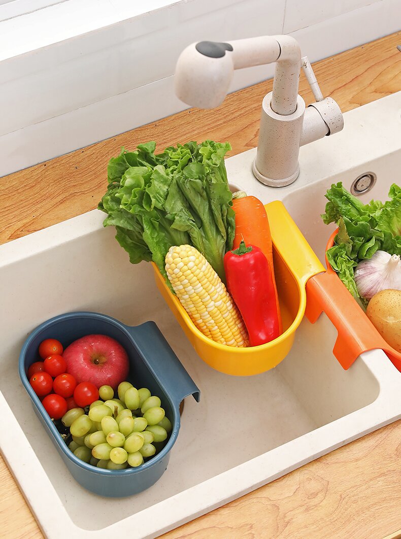 Kitchen Sink Drainage Basket Sink Hanging Filter Basket Plastic Storage Rack Kitchen Leftovers Residue Filter
