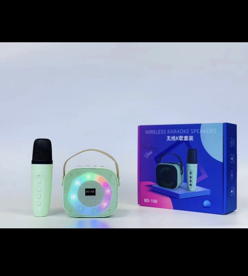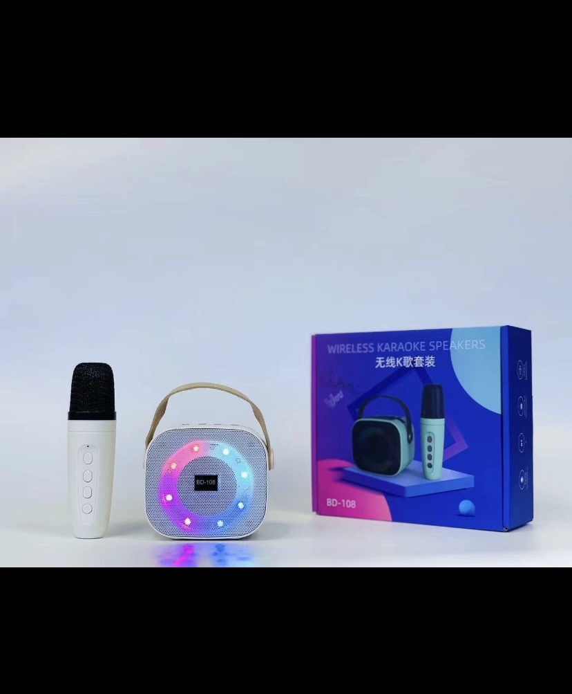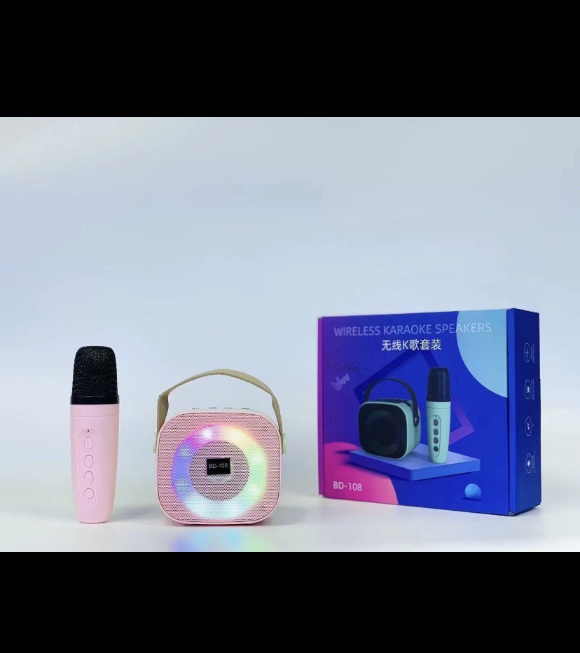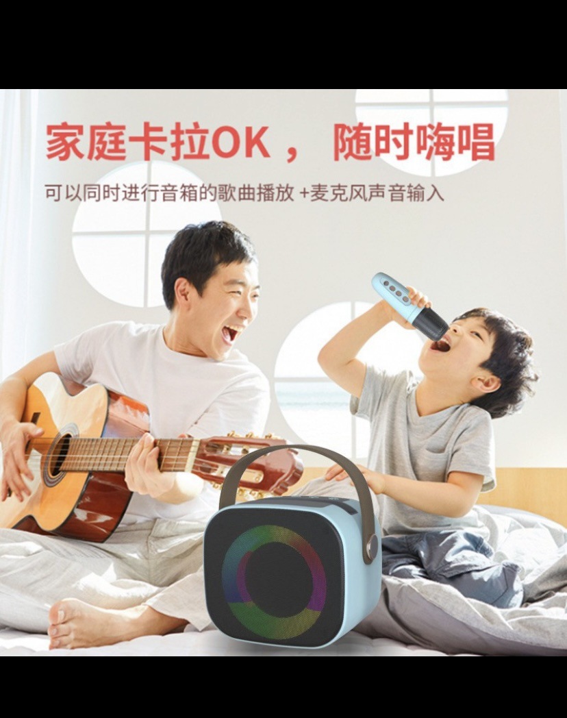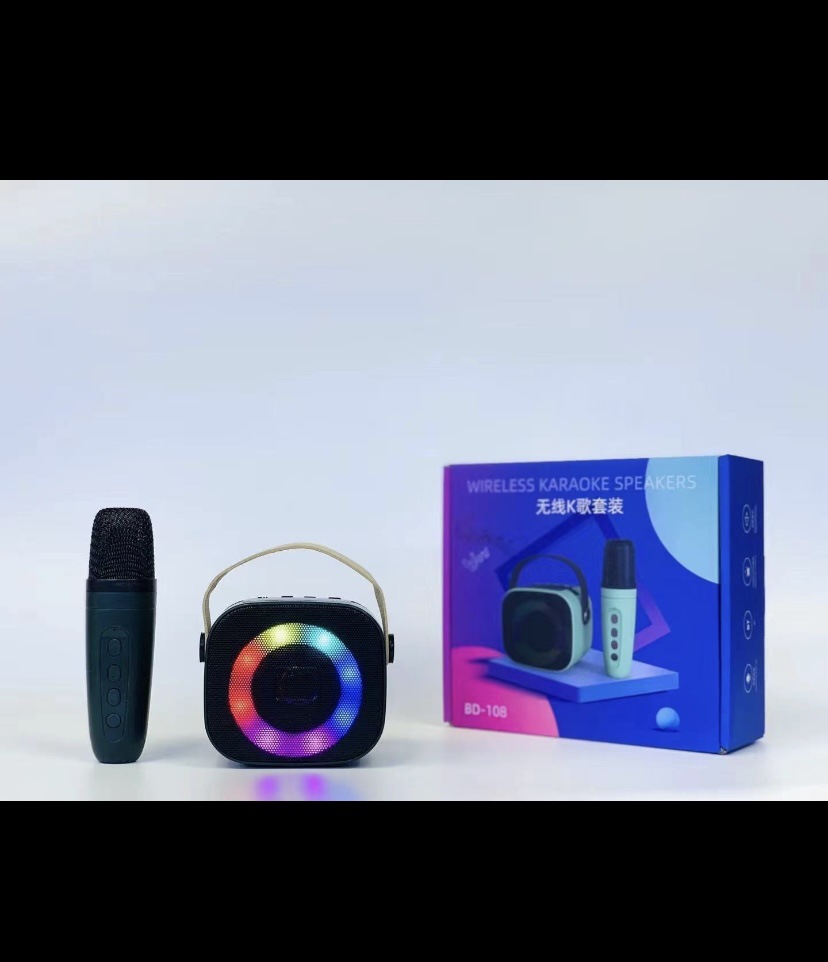 New Portable Wireless Bluetooth Speaker with Ktv Microphone Outdoor Colorful Light Mobile Phone Bracket Small Speaker