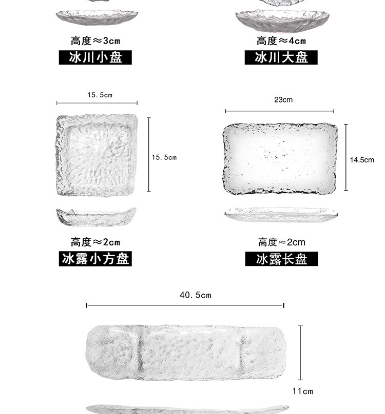 crystal glass tea tray handmade ice cream irregular simple fruit round dinner plate sushi long plate pot plate
