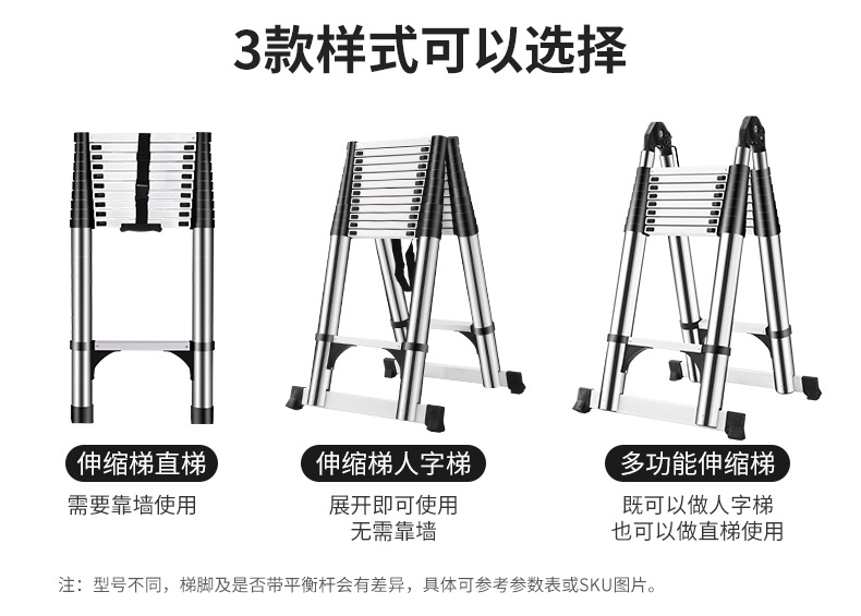 multifunctional telescopic ladder 2.0*2.0 m = 4.0 m (stainless steel)