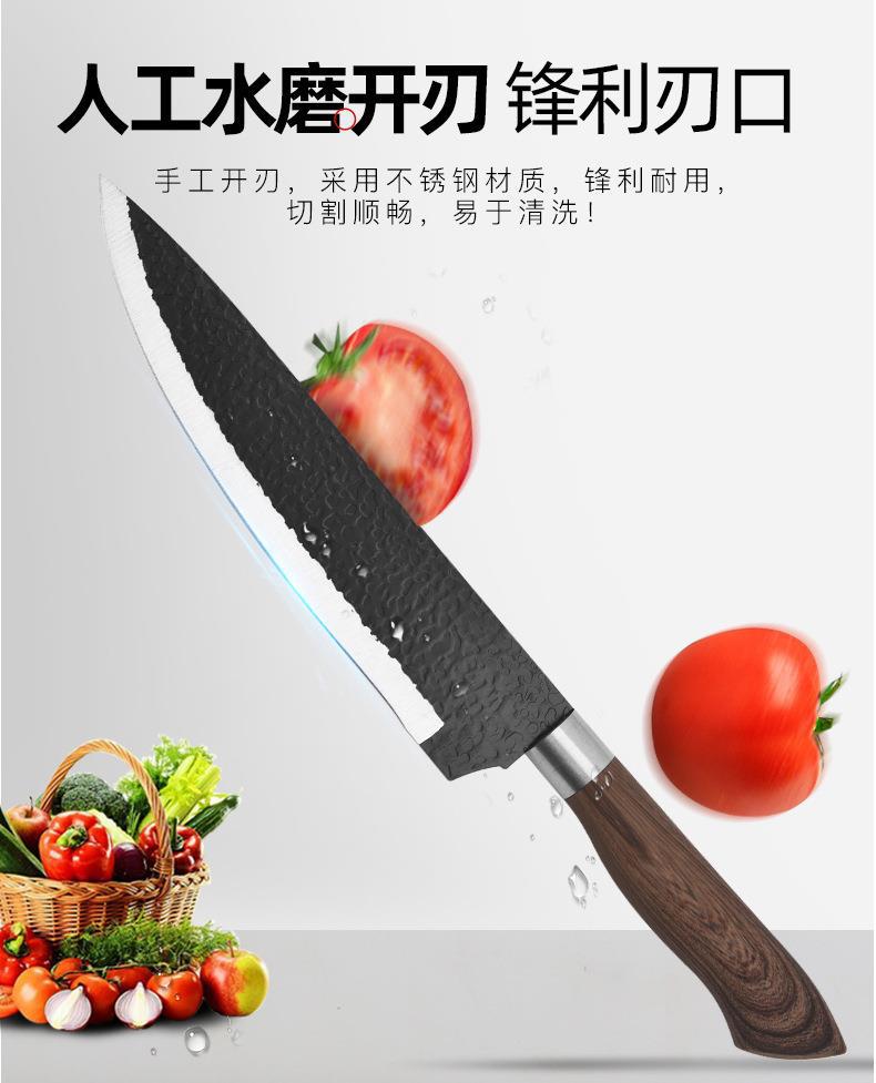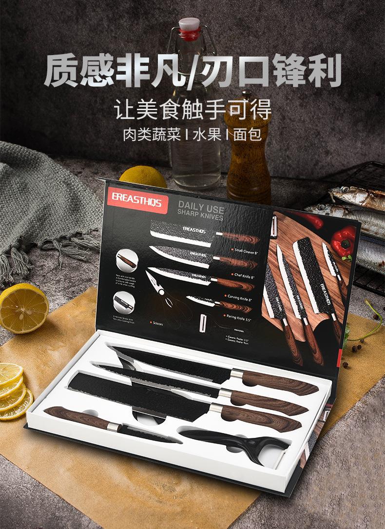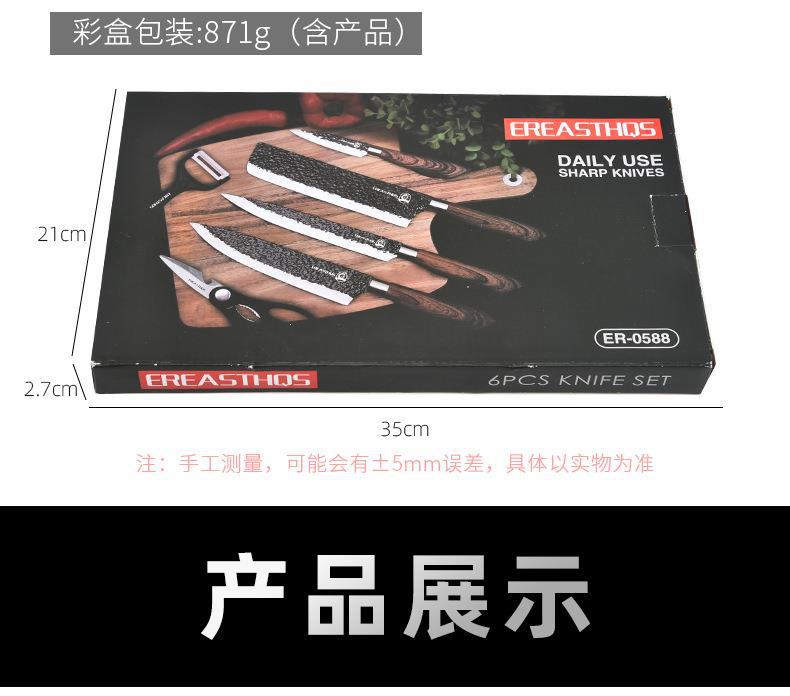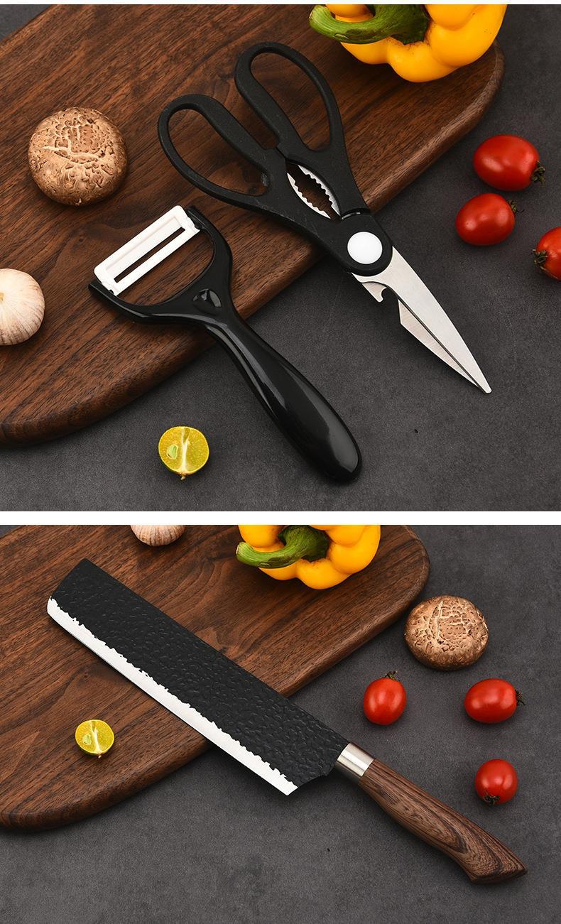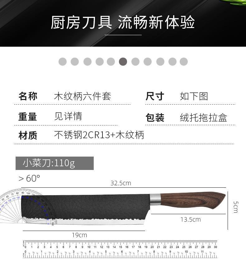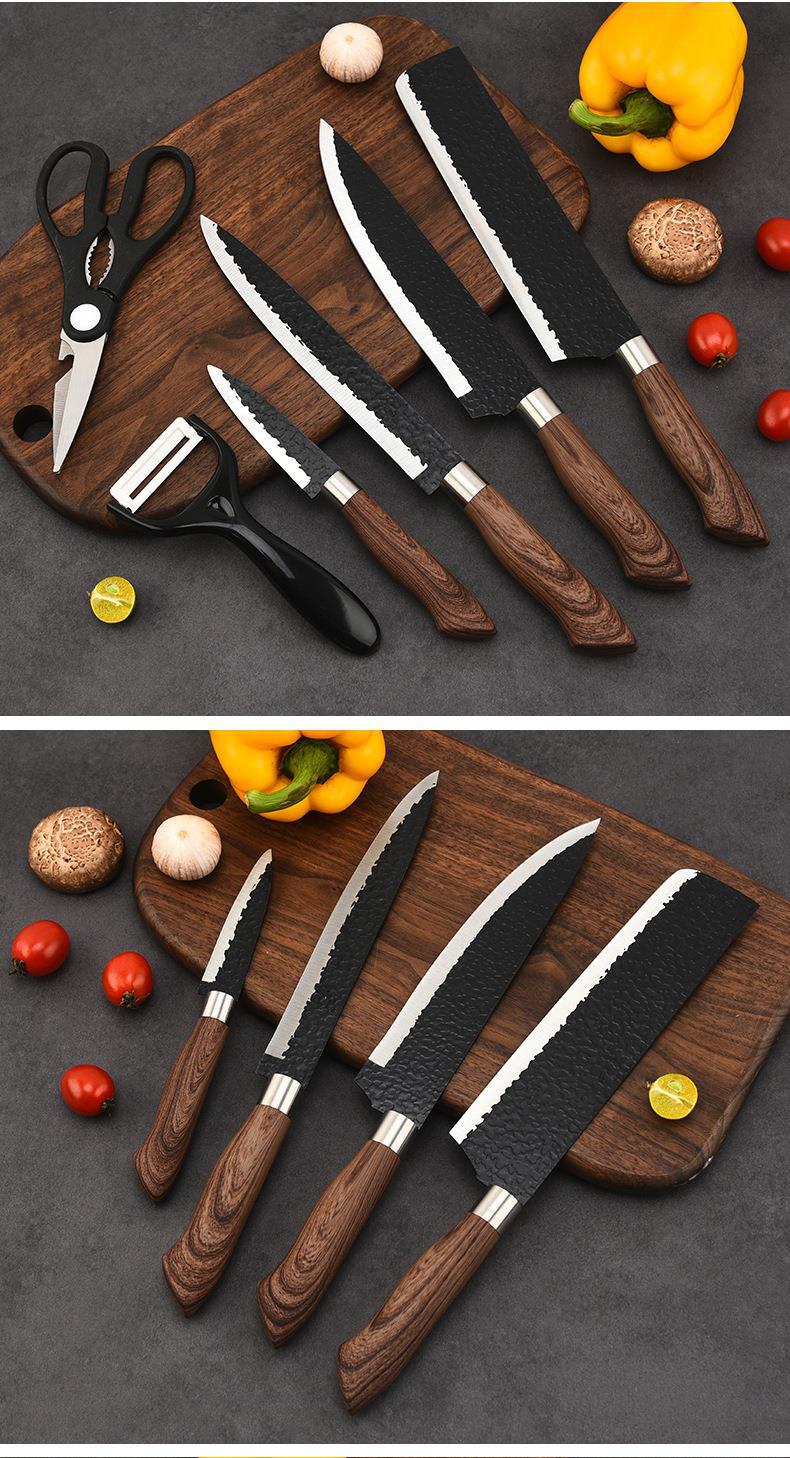 Wood Grain Kitchenware Set Household Stainless Steel Vegetable Knife Wood Grain Coated Hammer Pattern Knife Six-Piece Knife Set