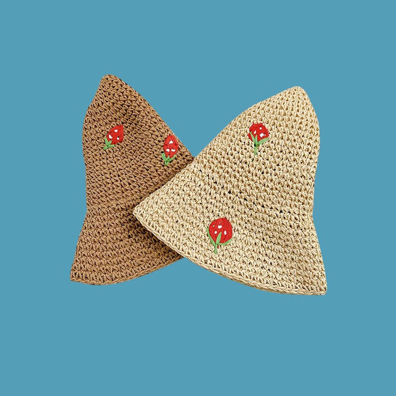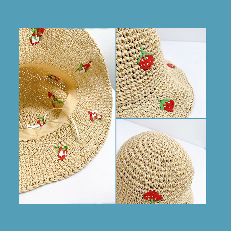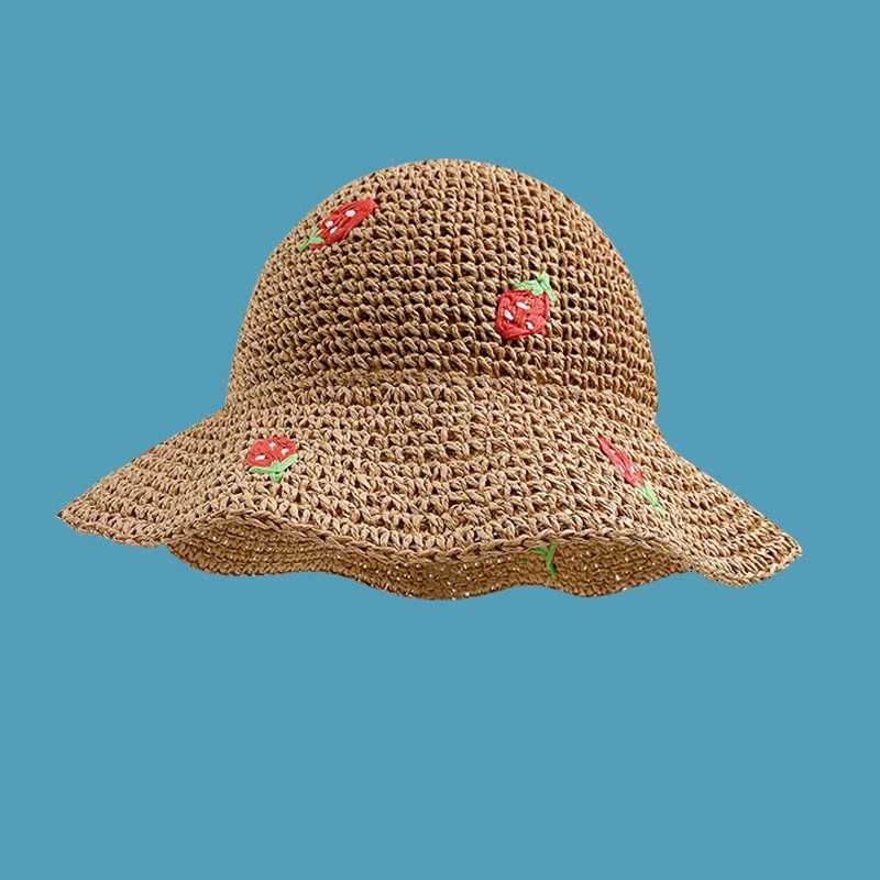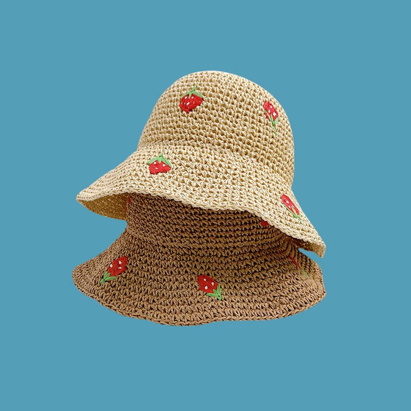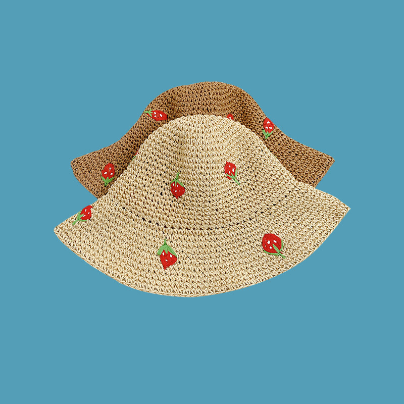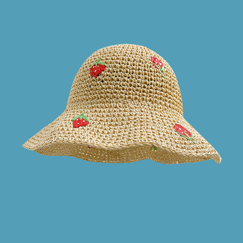 new summer strawberry hand-woven crochet small basin hat female seaside vacation beach hat small fresh straw hat