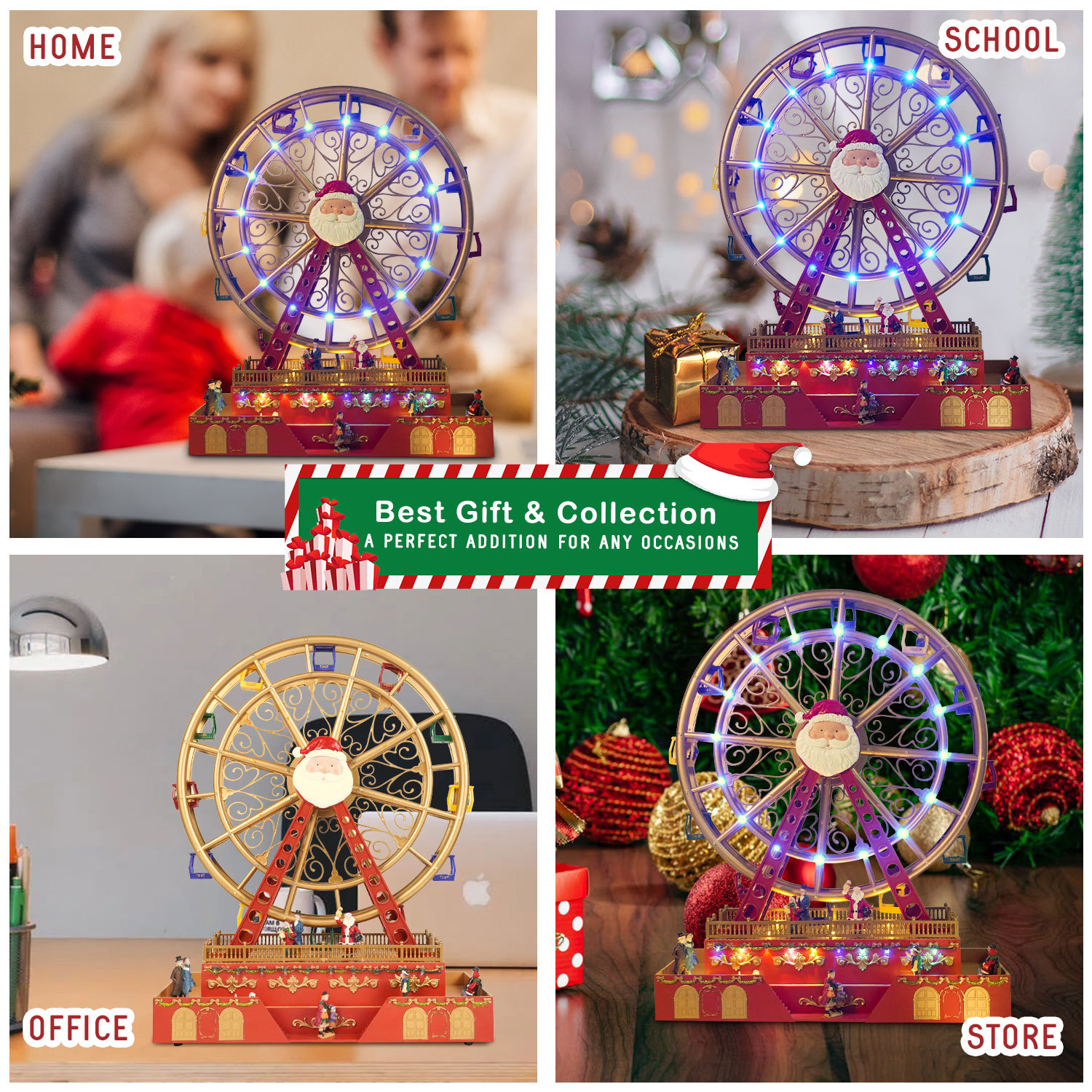 Christmas Spinning Lighted Ferris Wheel Decor, Holiday Desk Decor.