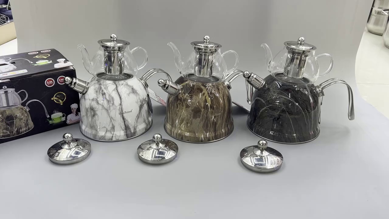 hausroland double-layer teapot sets stainless steel whistle kettle marble borosilicate glass teapot in stock