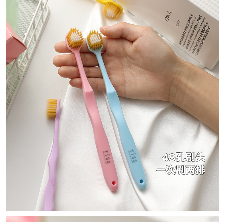 TISS Japanese Style New Adult Soft-Bristle Toothbrush Wide Head 48 Holes Single Japan Super Soft Fur Soft-Bristle Toothbrush Factory Wholesale