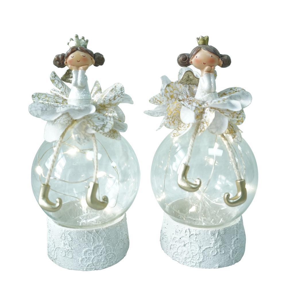 【In Stock】Creative Living Room Gift: A Fairy Statue Wearing a Crown Sitting on a Ball with Light Emitting Ornaments