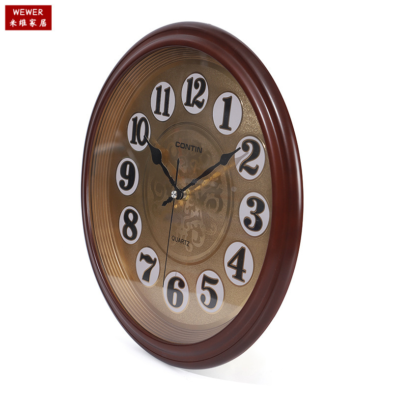 Kangtian Wall Clock Home Office round Simple Electronic Wall Clock Living Room Mute Clock Fashion Numbers Wall Clock Wholesale