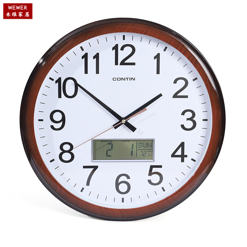 Kangtian Fashion Simple Wall Clock Luminous Digital LCD Calendar Stable Large Living Room Digital Wall Clock Factory Wholesale