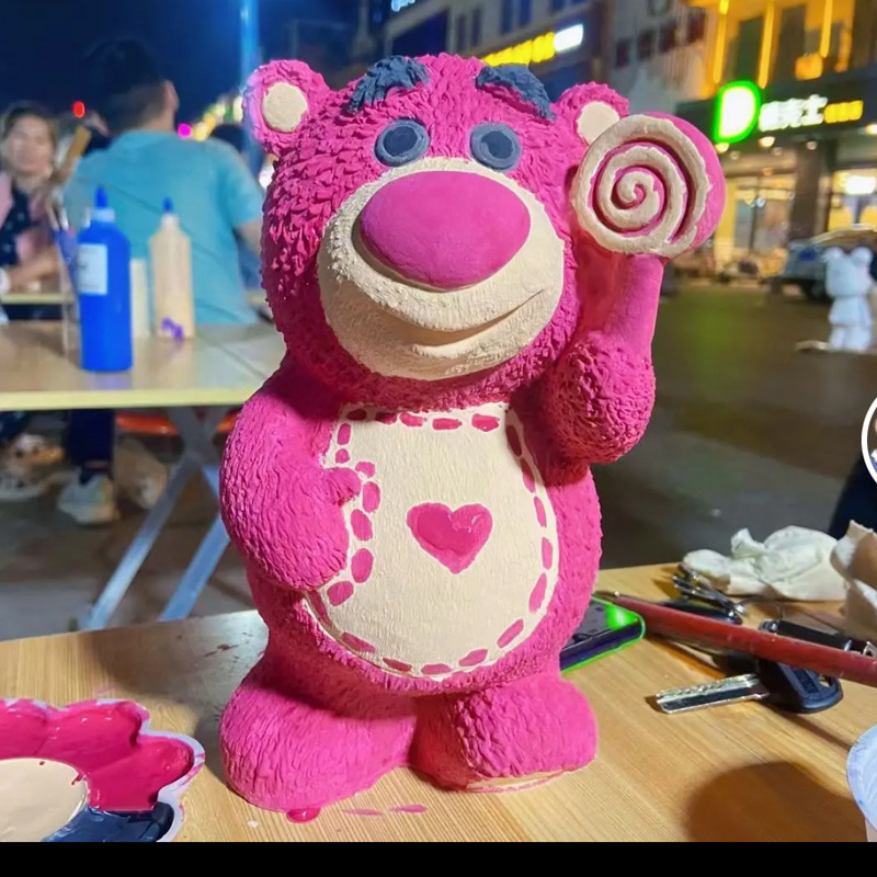 Note: To use the Fluid Bear, first clean it with a wet wipe or towel. Some parts may be sticky with oil, making it difficult to apply the color. Therefore, clean the bear thoroughly before applying the paint. Start by painting the neck, arms, and legs, which are less likely to leave a stain. Then, work from the top down. After painting, let it sit for about 10 minutes. Use a brush to fill in any areas that were not painted. Wait for it to dry, and you're done!