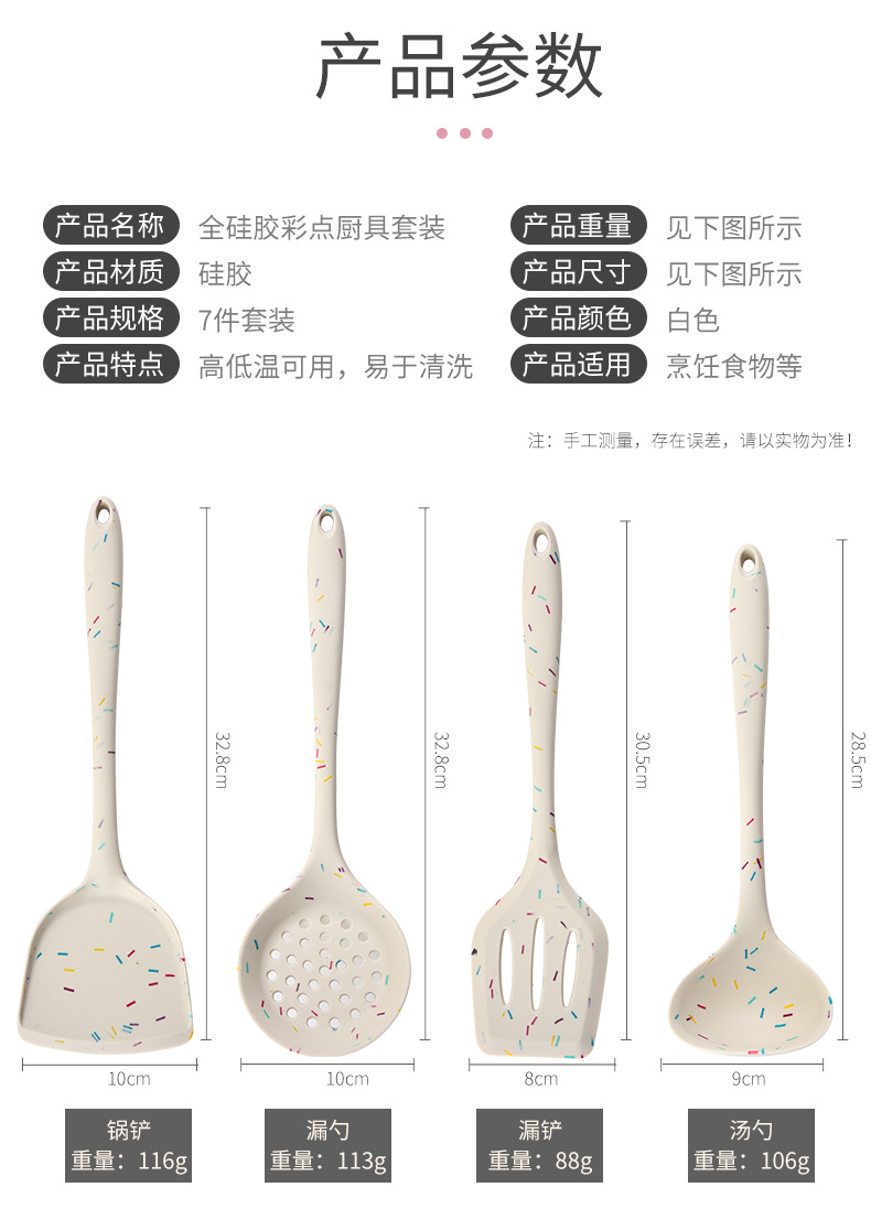 Factory Direct Sales Silicone Kitchenware Kitchen Seven-Piece Spatula and Soup Spoon Kitchen Multi-Functional Cooking Silicone Shovel Set