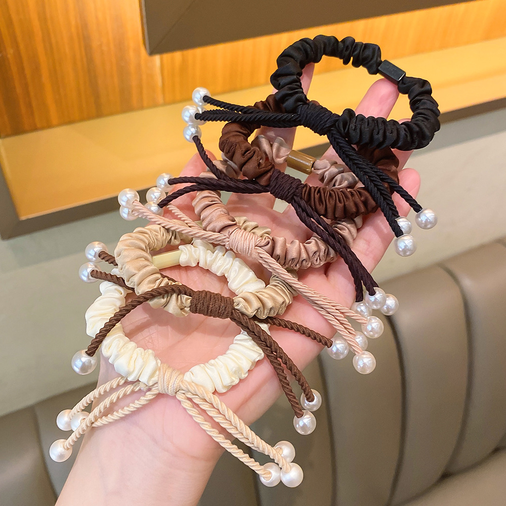 medium brown pearl knotted hair ring