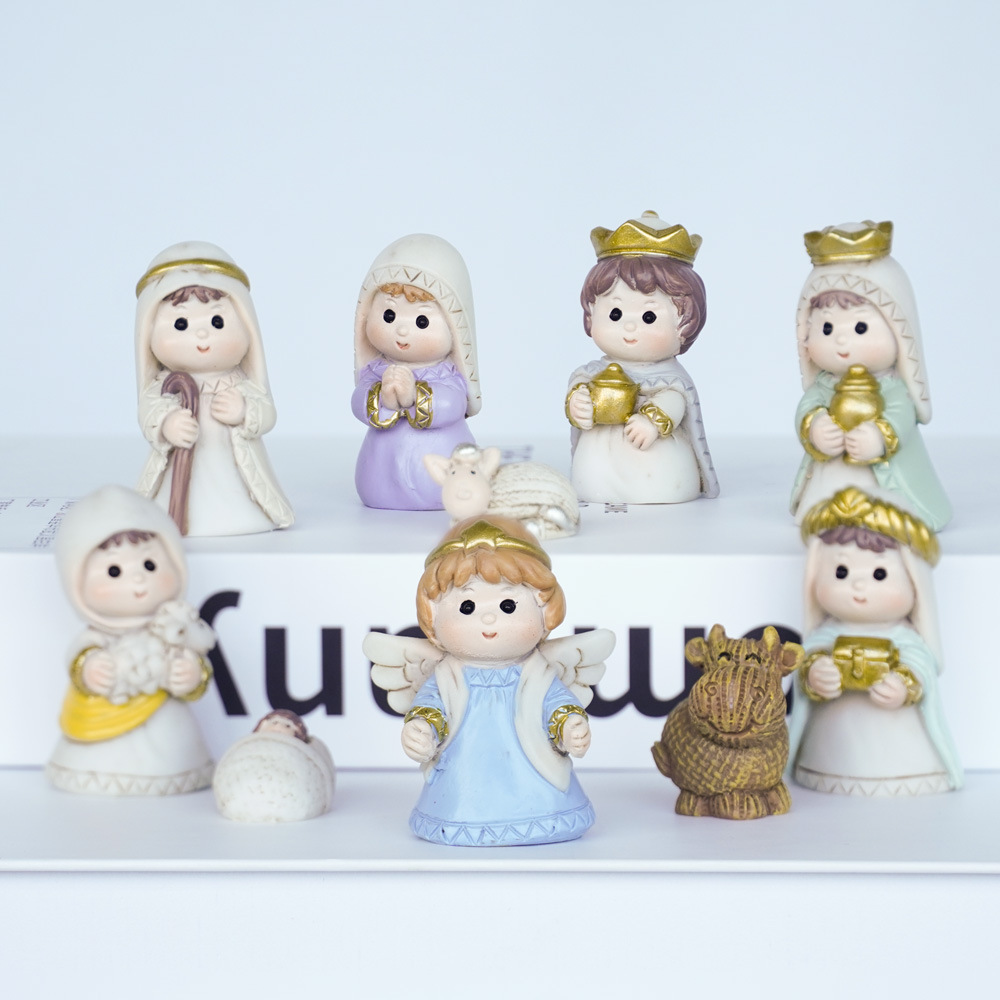 【In Stock】New Jesus Birth Scene Christmas Manger Set Resin Religious Decorations Religious Miniature Figures Indoor Decorations