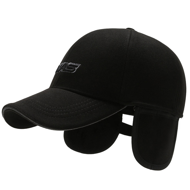 Hat Men's Winter Middle-Aged and Elderly Thickened Warm Woolen Baseball Cap Embroidered Letters Middle-Aged Father Ears Protection Peaked Cap