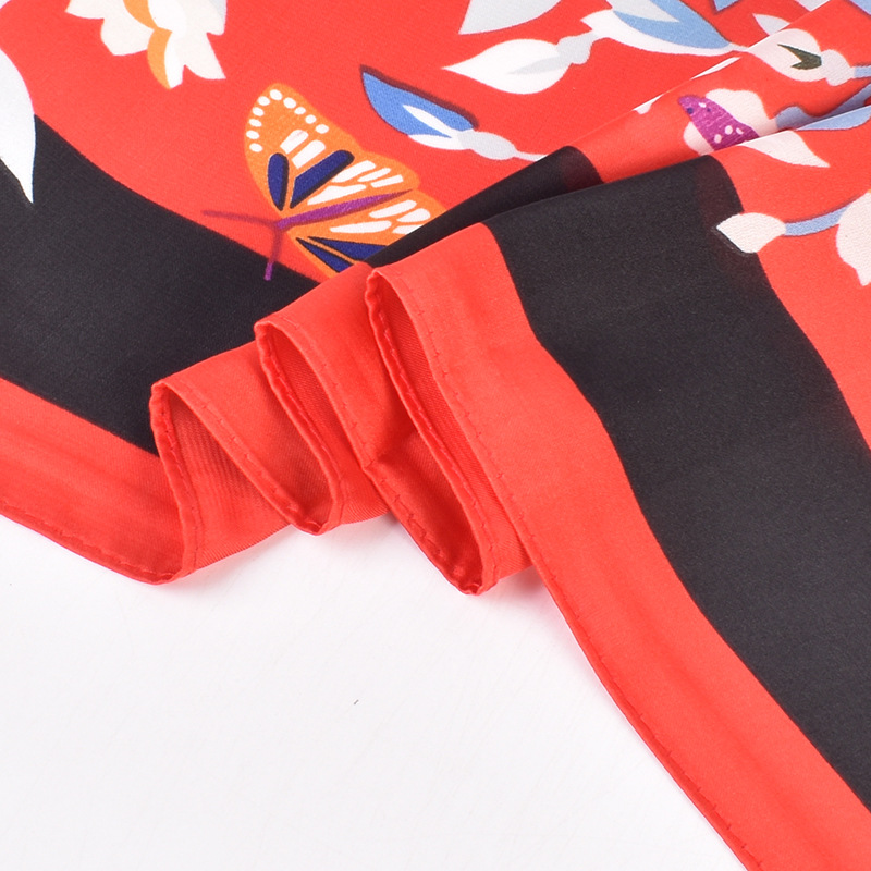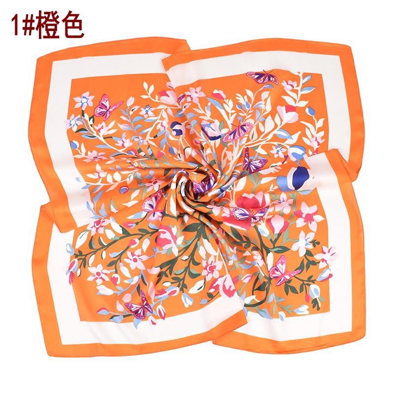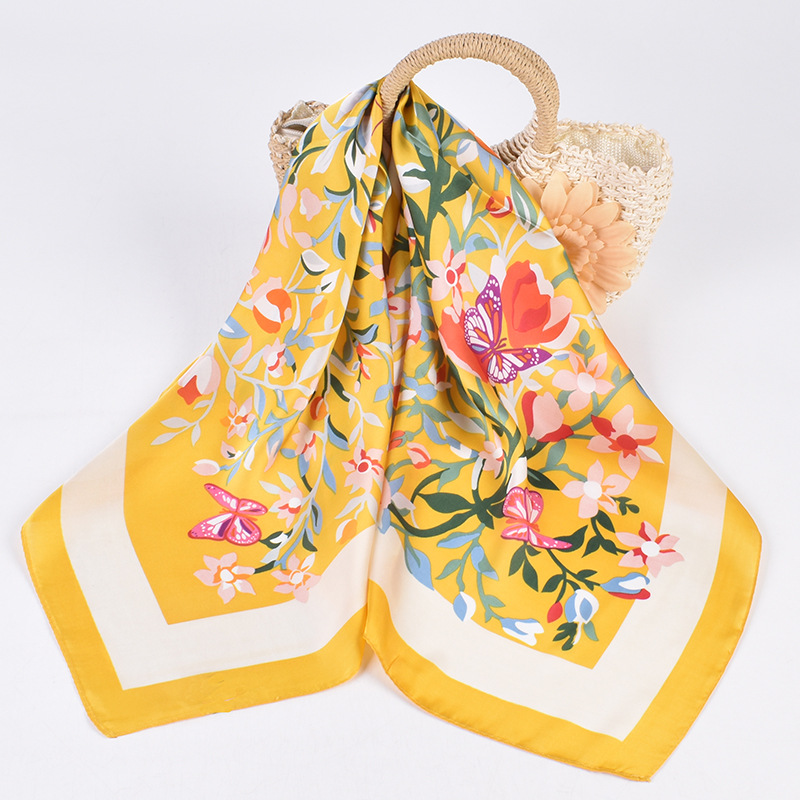 2023 Summer New European and American Fashion All-Match Silk Scarf Colorful Flowers Butterfly Imitation Silk Thin 70 Kerchief Scarf