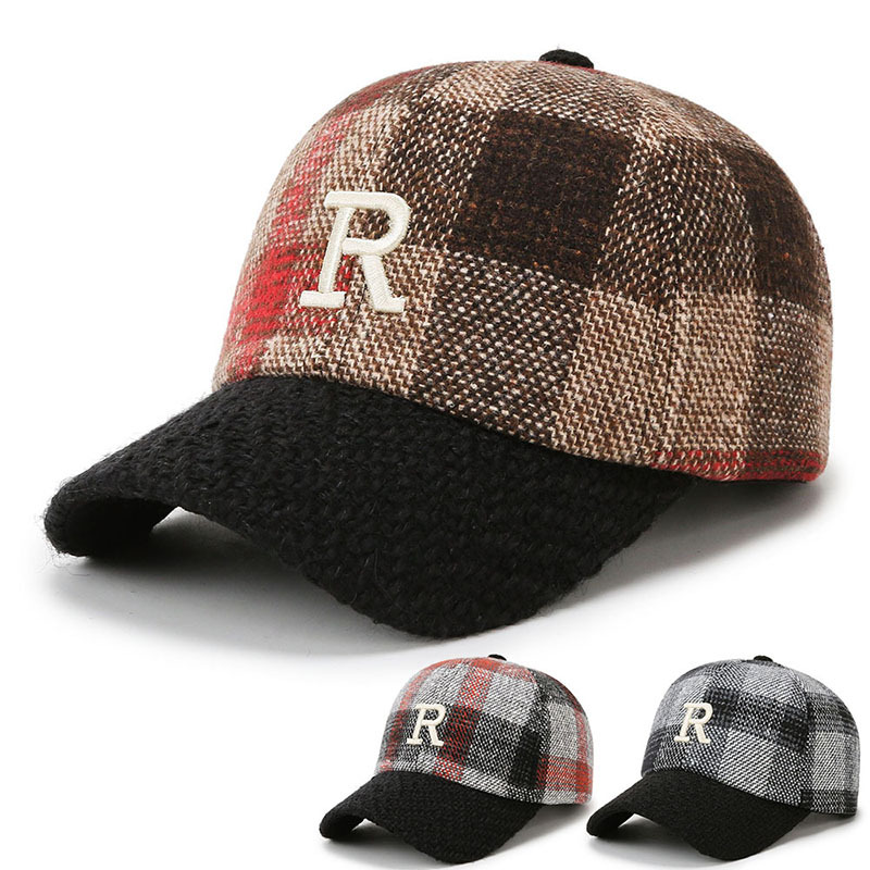 Hat Women's Letter Checked Cap Autumn Winter Korean Style All-Matching Fashion Casual Trendy Curved Brim Sun-Shade Baseball Cap
