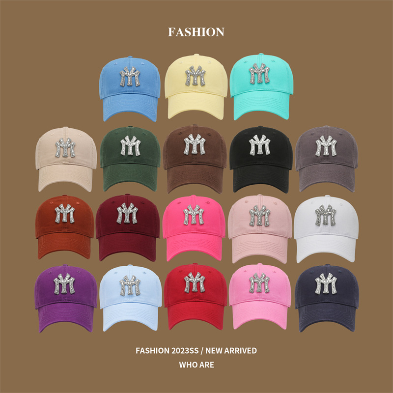 Baseball Cap Female Spring and Autumn All-Match Sun Hat Letter Rhinestone Peaked Cap Soft Top Couple Sun Hat Male