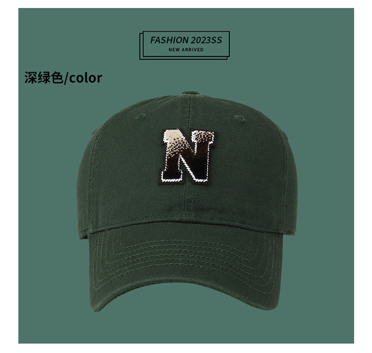 N Letter Patch Fashion Baseball Cap Male and Female Students All-Matching Sun Hat Couple Casual Sun Peaked Cap