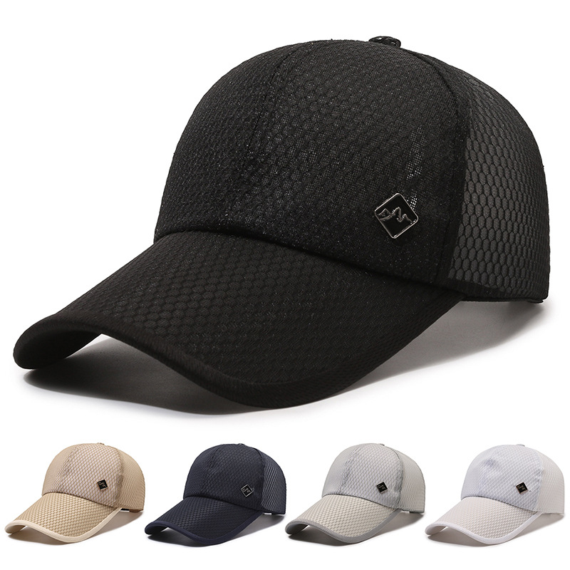 New Hat Men's Spring/Summer Lengthened Brim Sun Hat Mesh Breathable Baseball Cap Outdoor Fishing Cap Peaked Cap