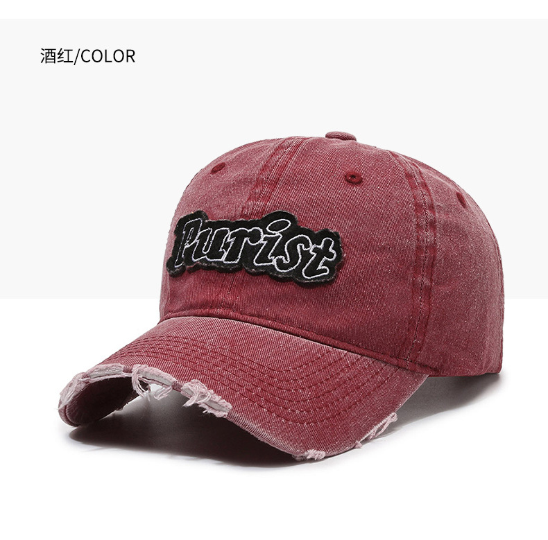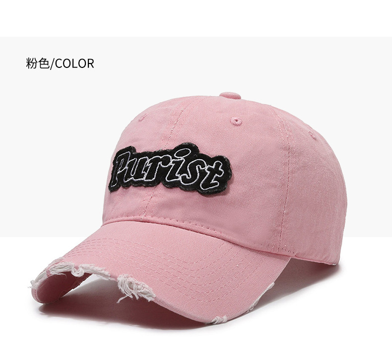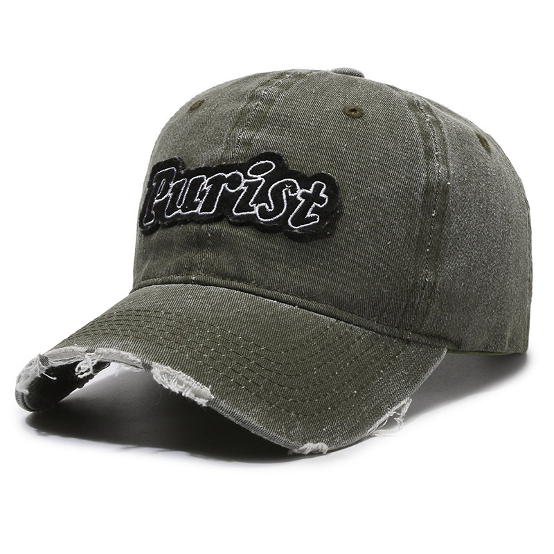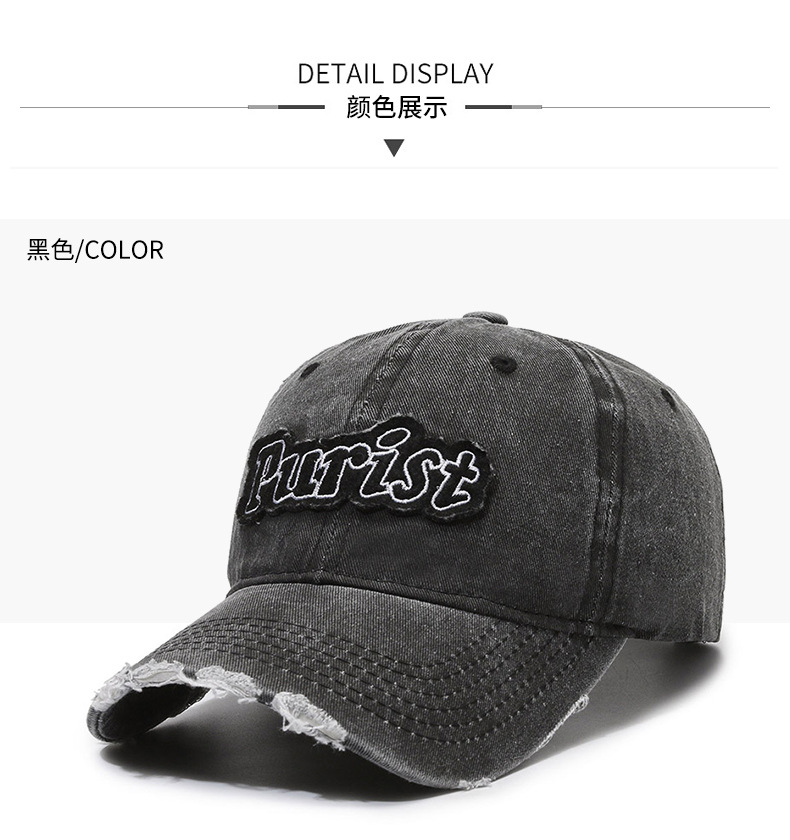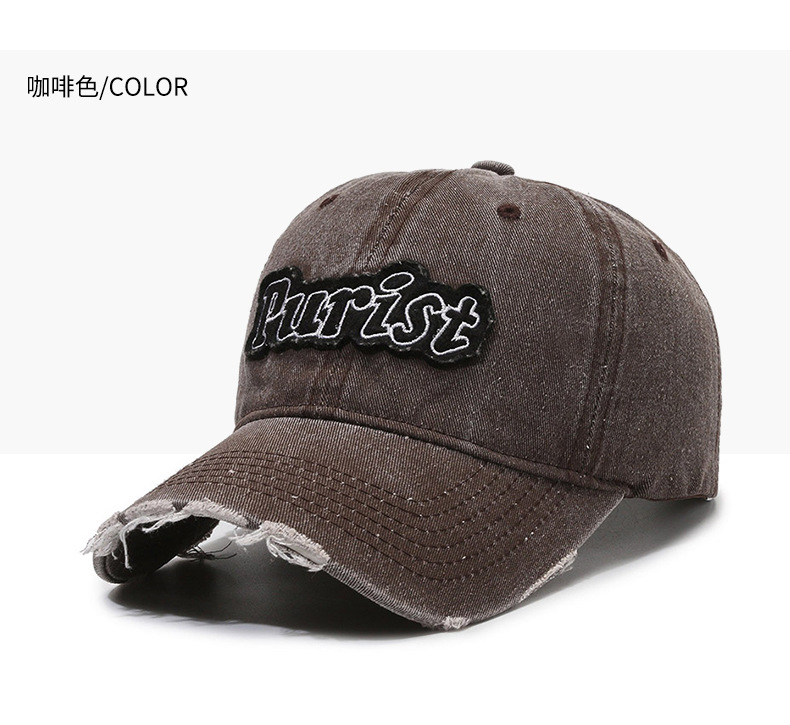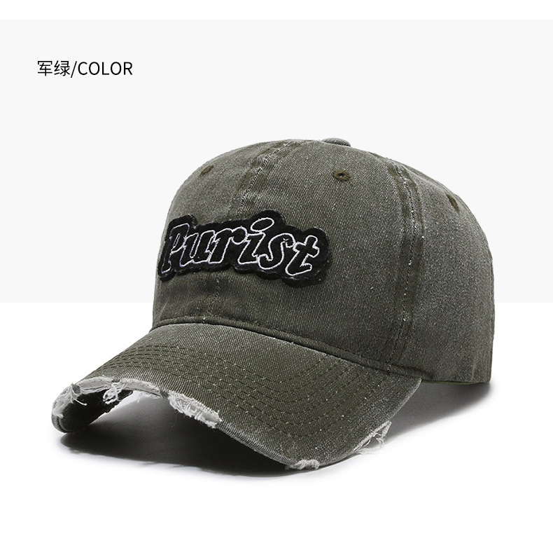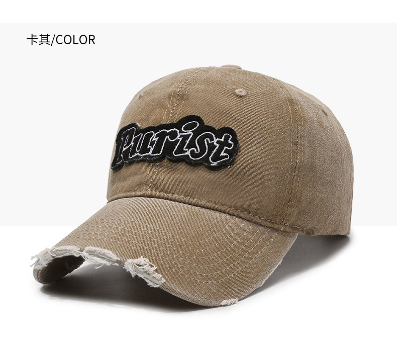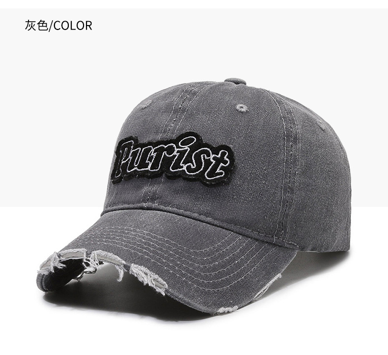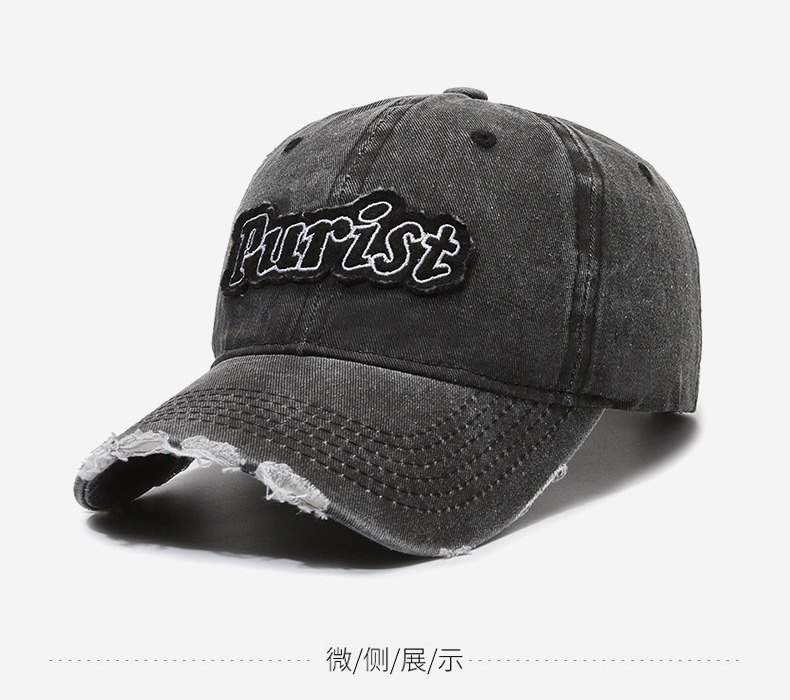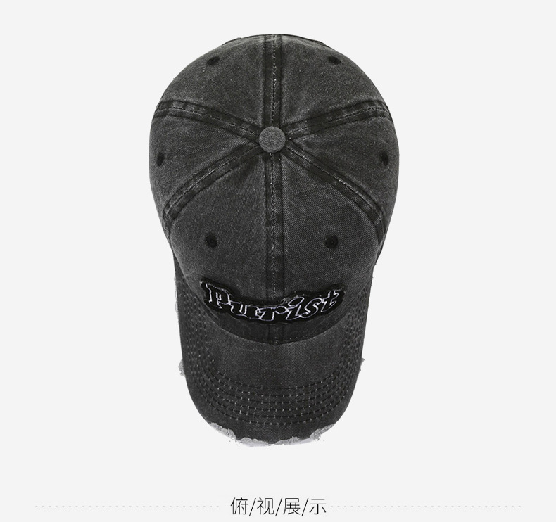 Spring and Summer New Niche Ripped Letter Print Peaked Cap Female Street Retro Washed Distressed Baseball Cap Sun Hat Male