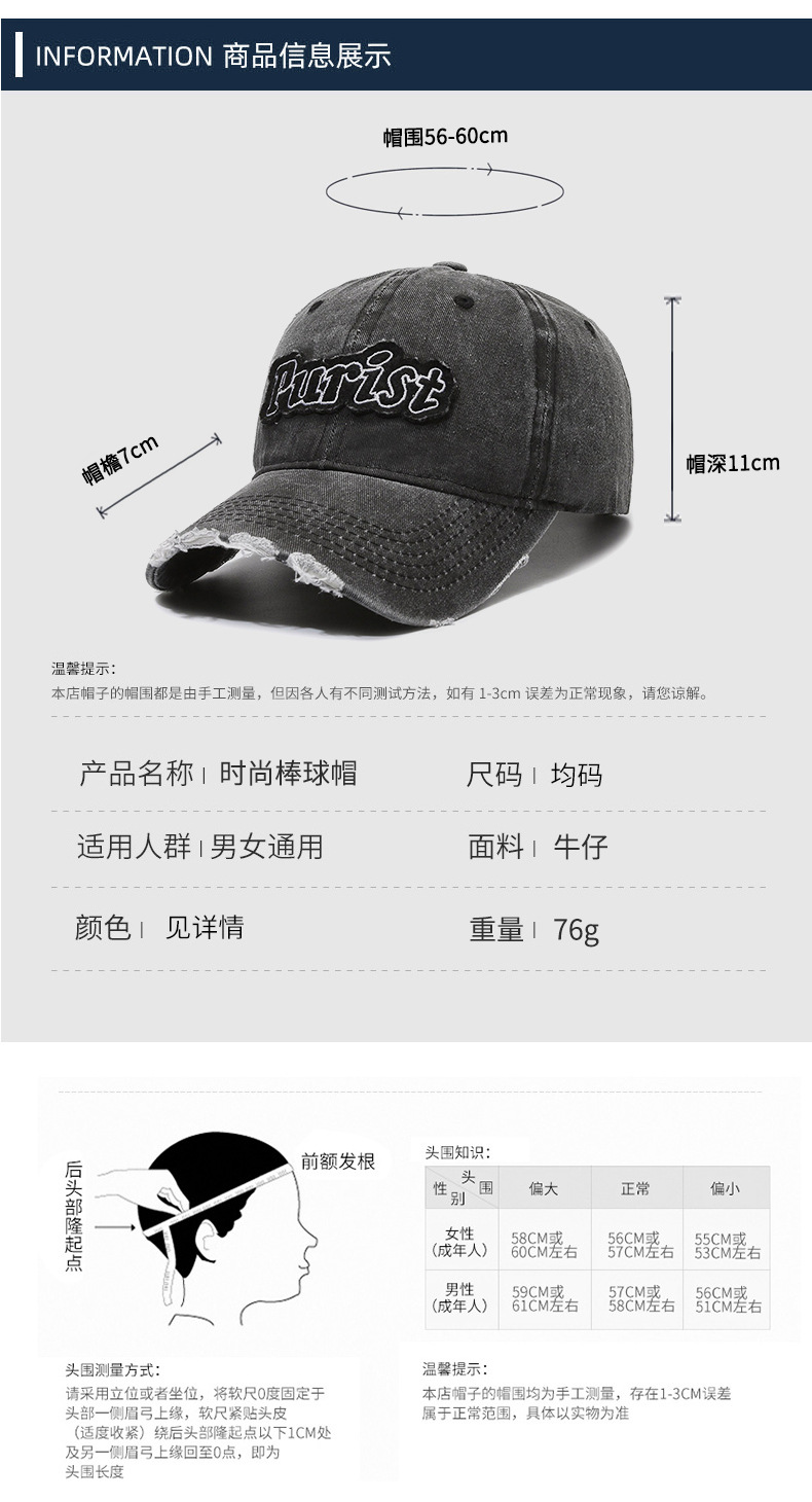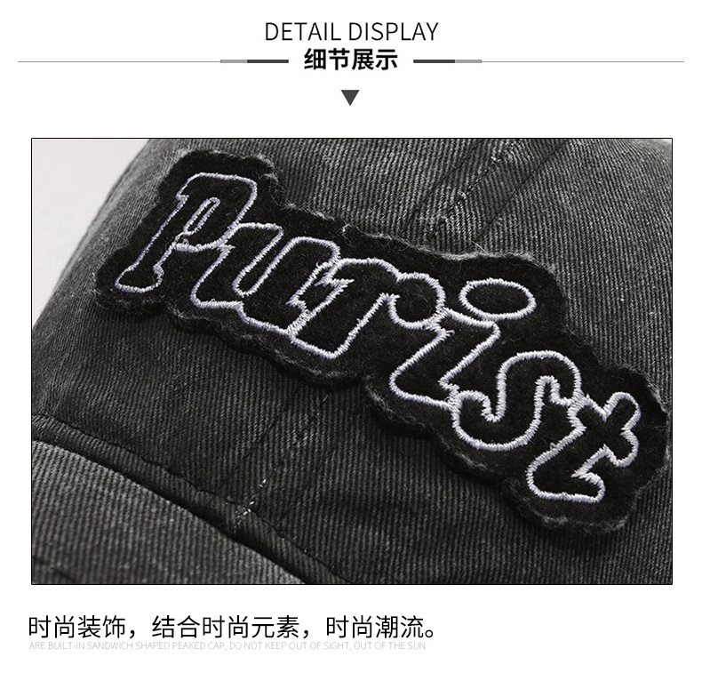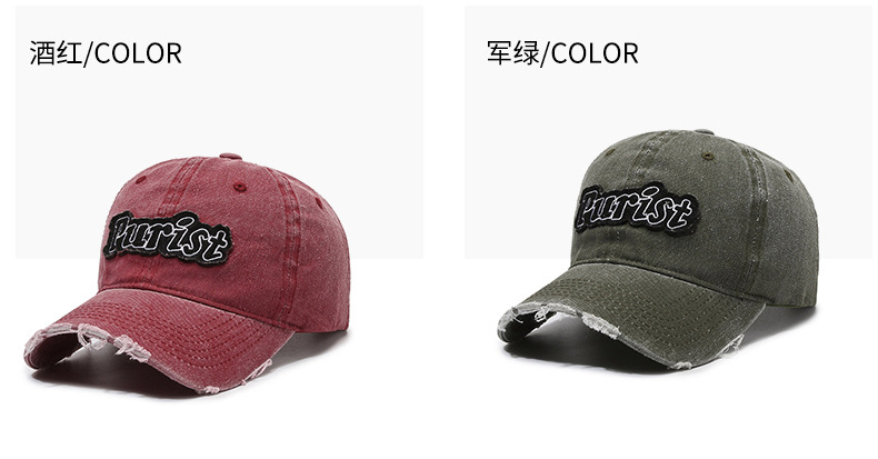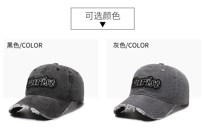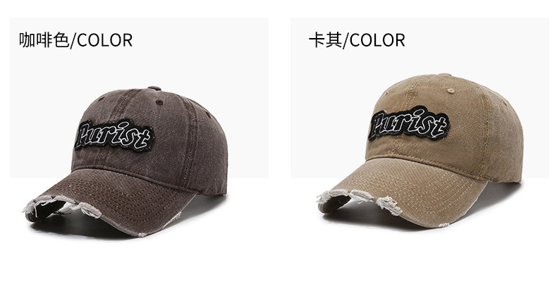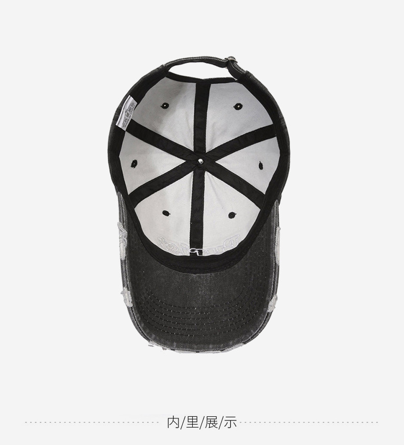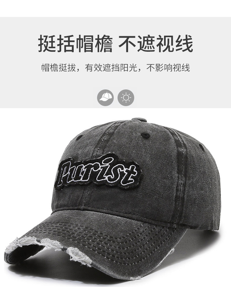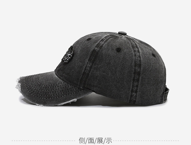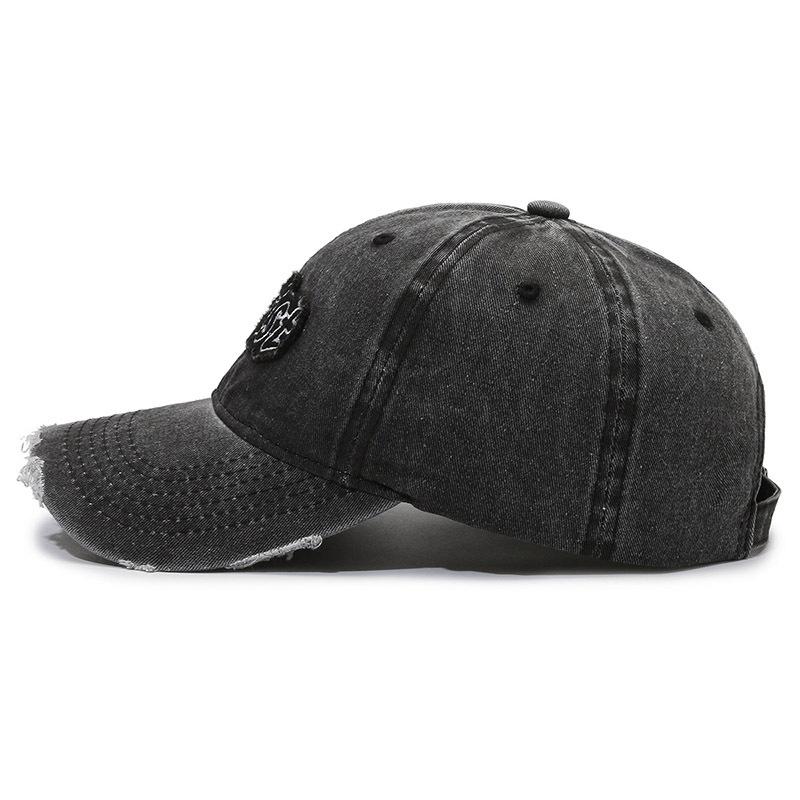 Spring and Summer New Niche Ripped Letter Print Peaked Cap Female Street Retro Washed Distressed Baseball Cap Sun Hat Male