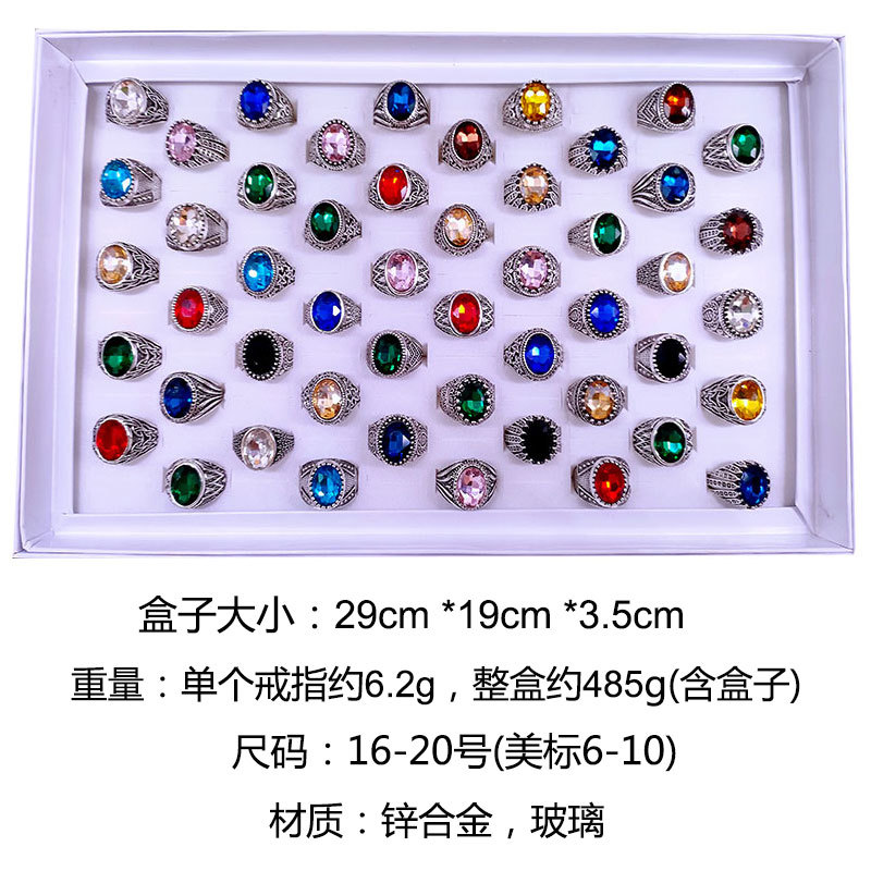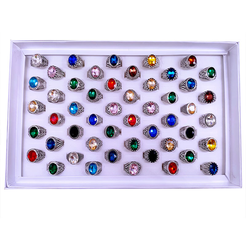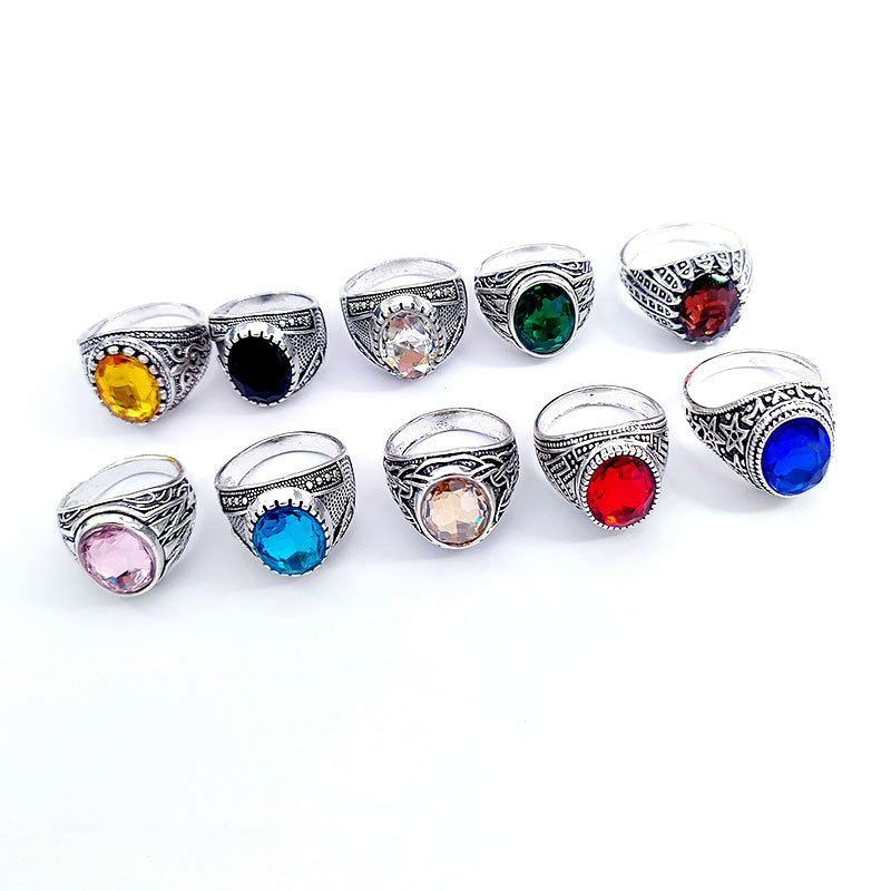New Foreign Trade High Profile and Generous Colored Glass Ring Index Finger Crystal Gem Exported to Europe and America Retro Ancient Silver Accessories
