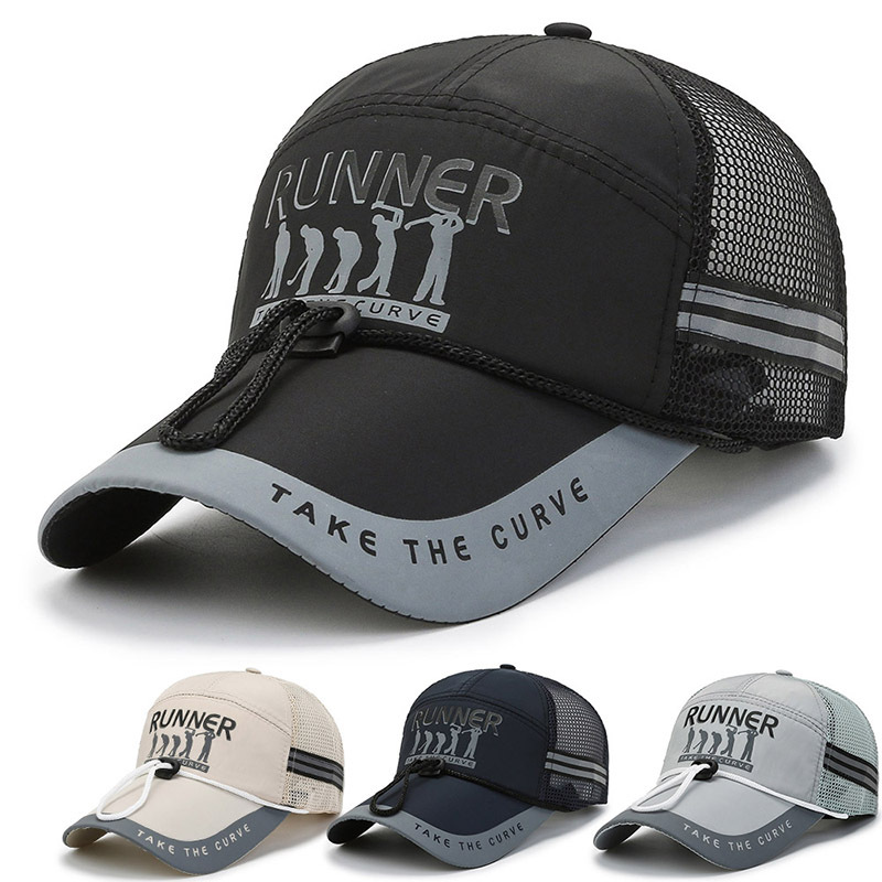 Hat Men's Summer Outdoor Sun Hat Quick-Drying Breathable Net Cap Drawstring Baseball Cap Fishing Sun Hat Tide