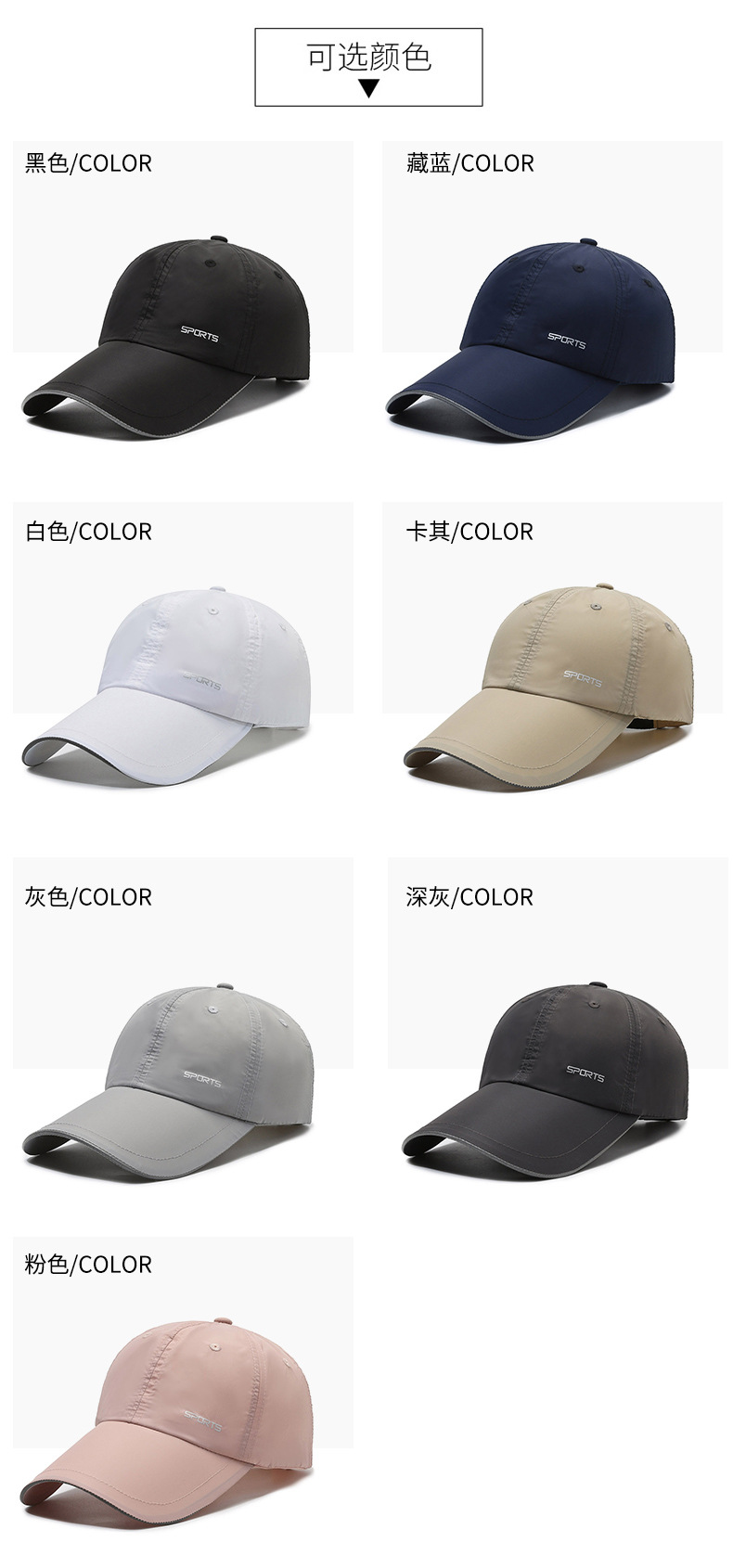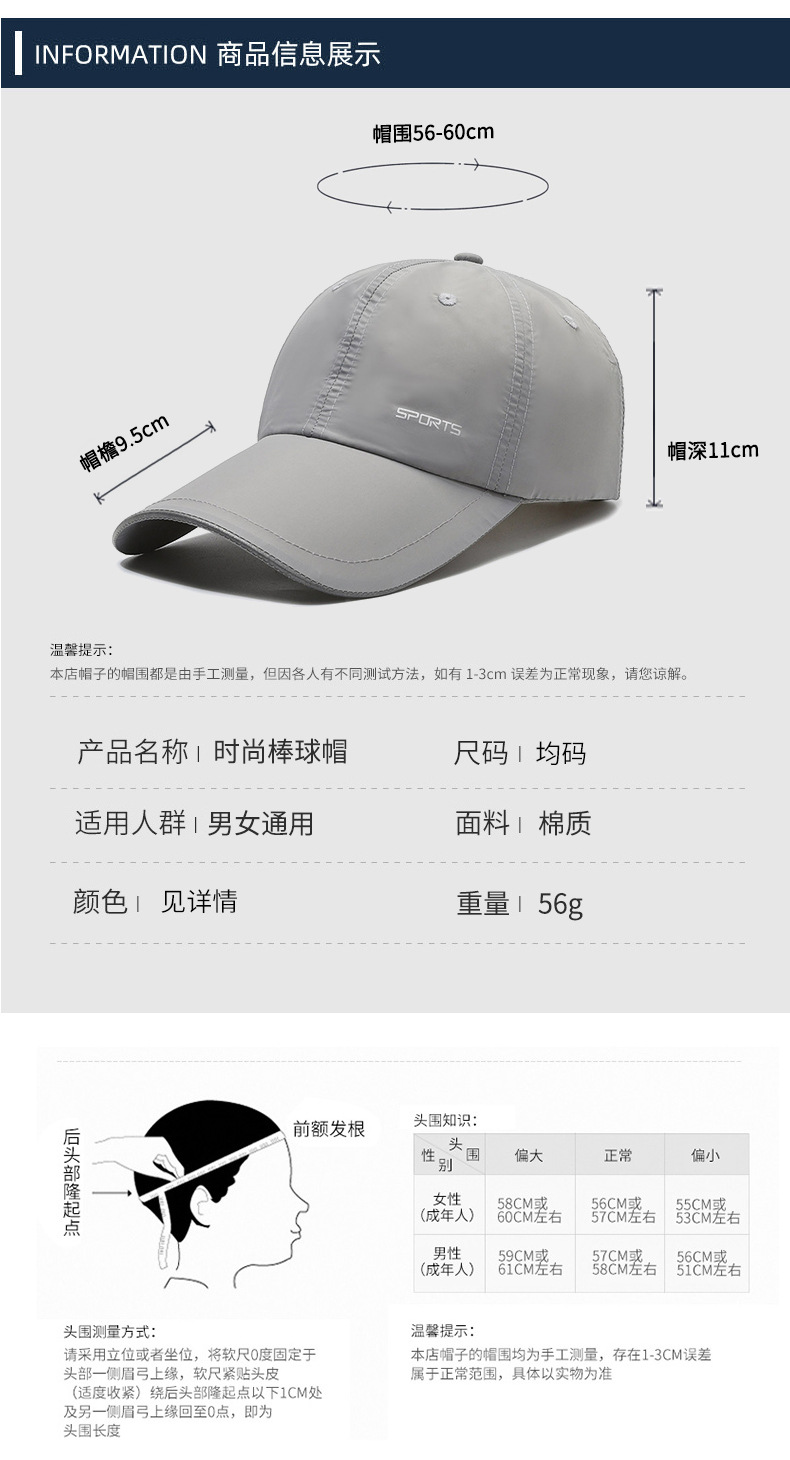Spring and Summer New Outdoor Baseball Cap Men Lengthened Brim Sun Hat Simple Travel Breathable Quick-Dry Baseball Cap Women