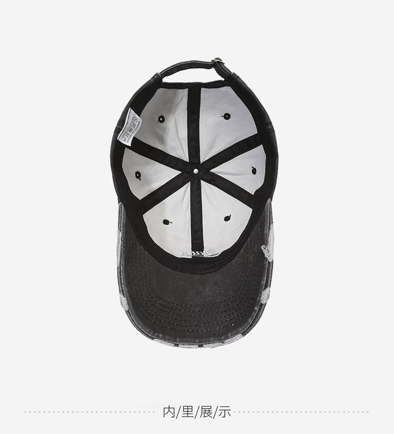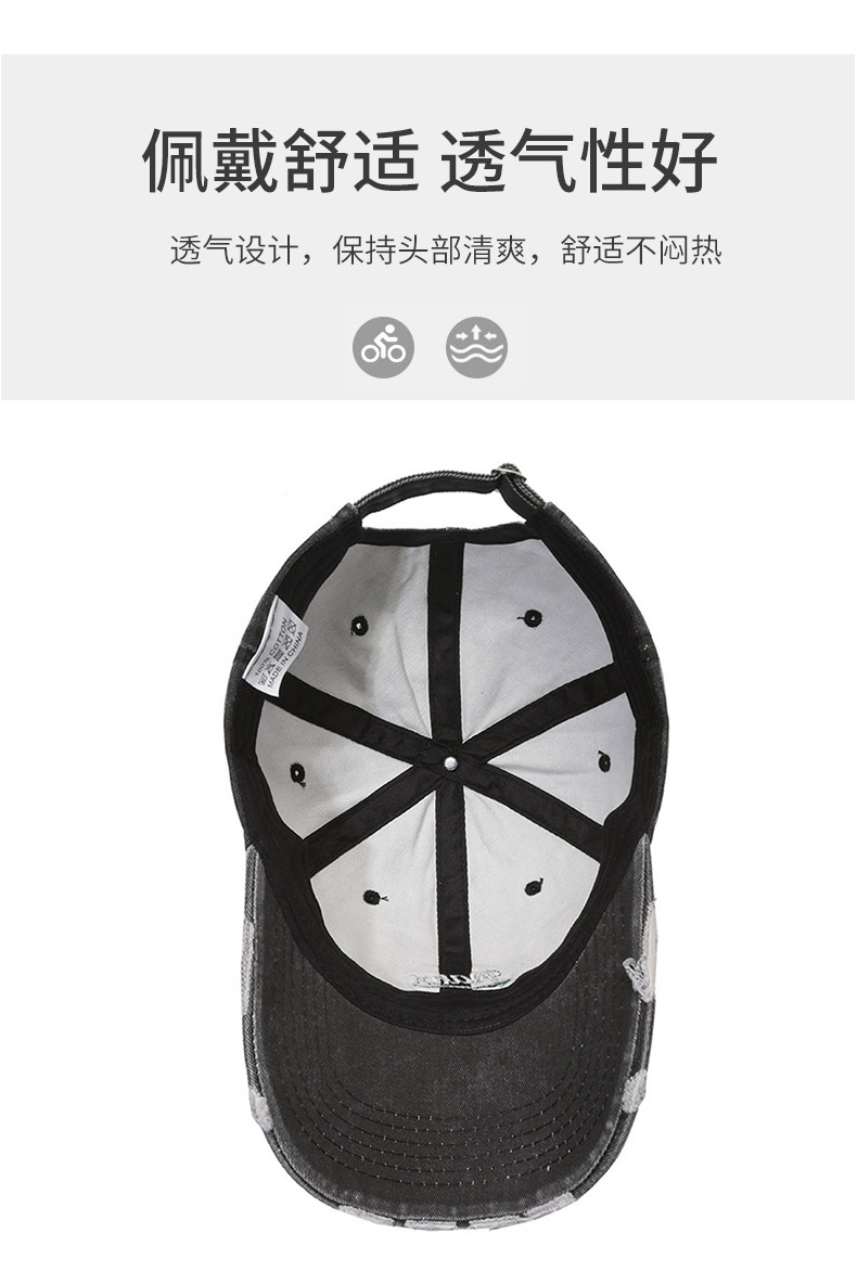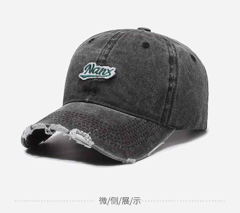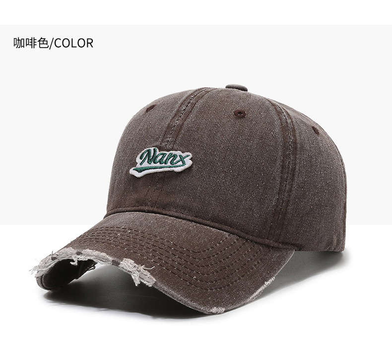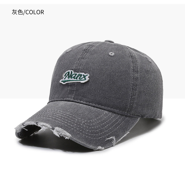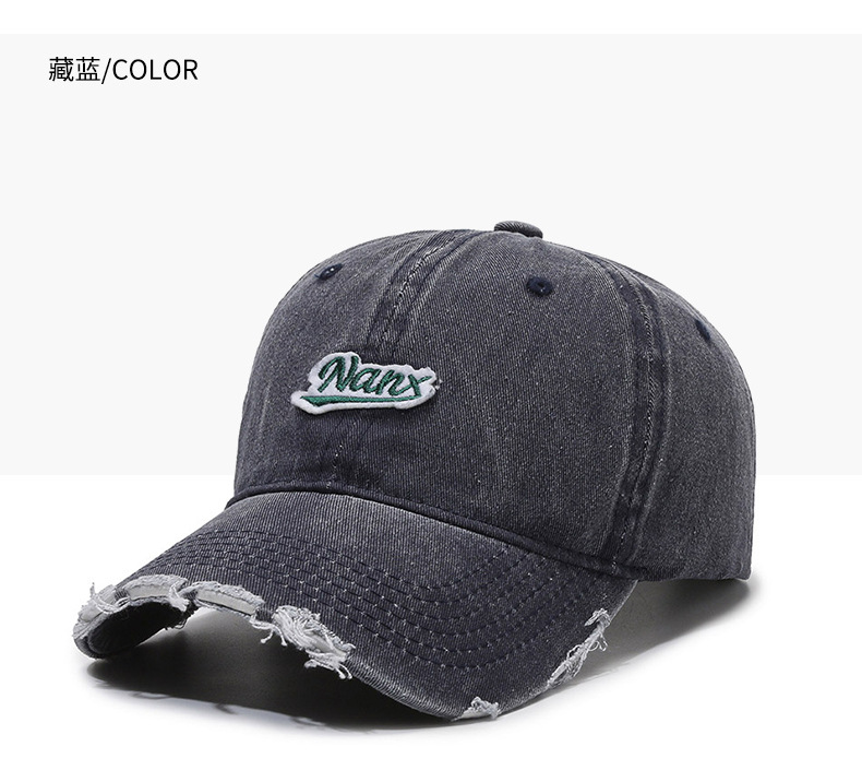 Hat Women's Korean-Style Casual All-Match Retro Washed Baseball Cap Spring Fashion Edging Ripped Distressed Peaked Cap Men's Fashion