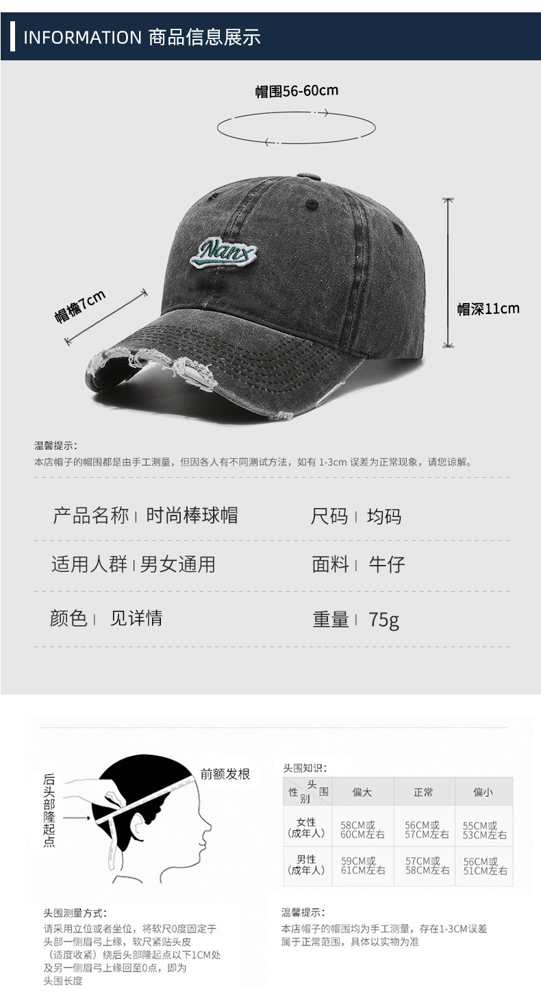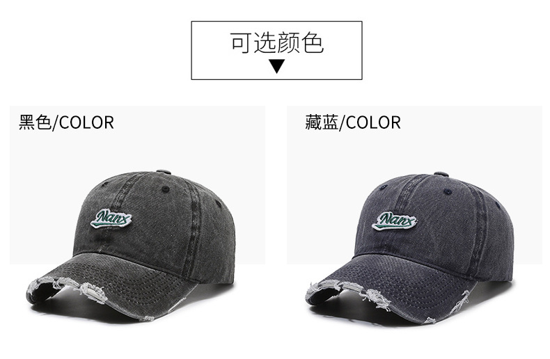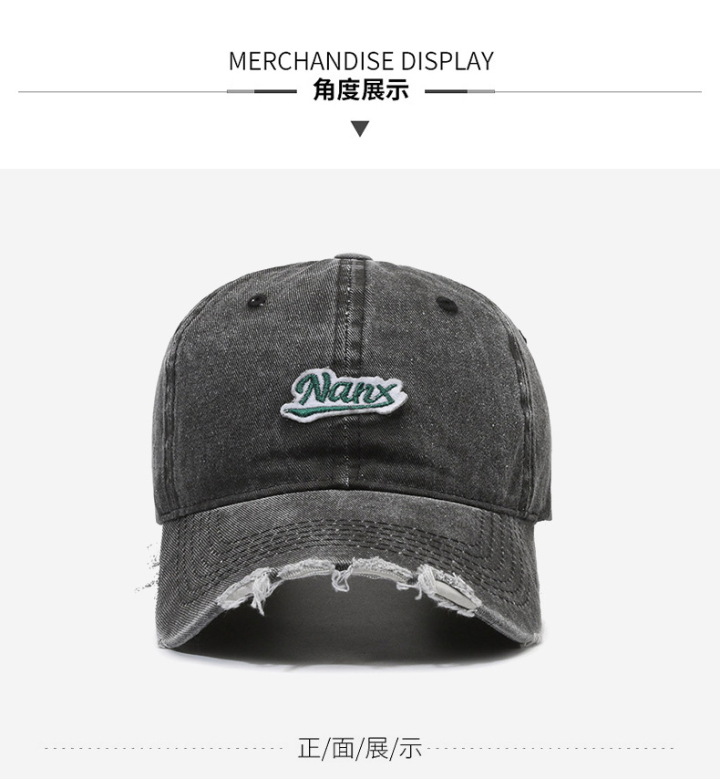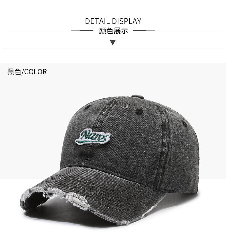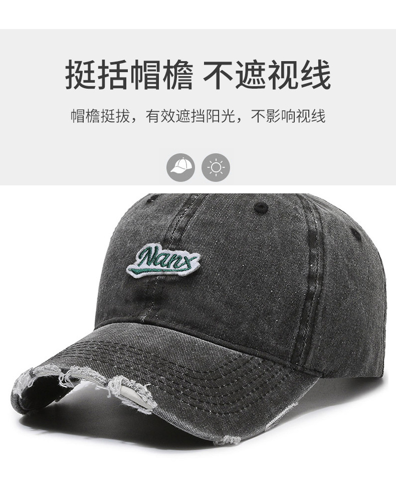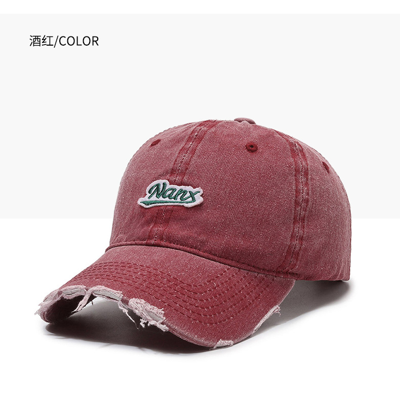 Hat Women's Korean-Style Casual All-Match Retro Washed Baseball Cap Spring Fashion Edging Ripped Distressed Peaked Cap Men's Fashion