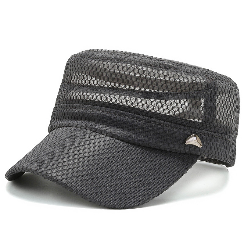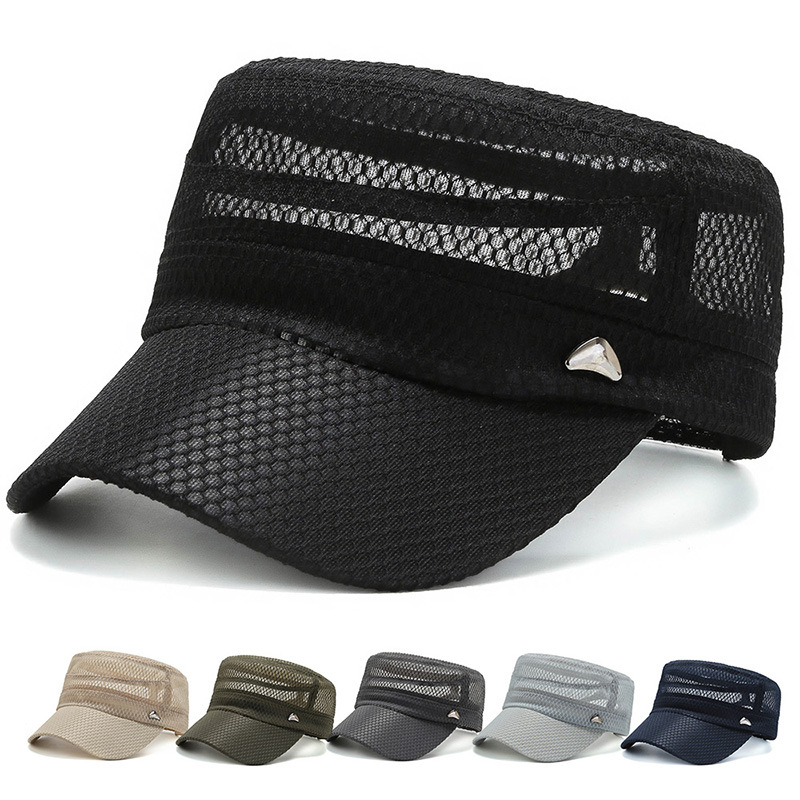 Summer Flat-Top Hat Men's Quick-Drying Middle-Aged and Elderly Peaked Cap Sun Hat Summer Hat Middle-Aged Breathable Net Cap Sun Hat Thin