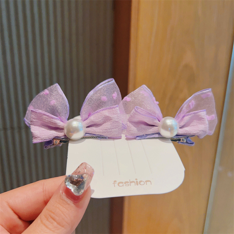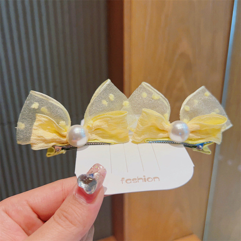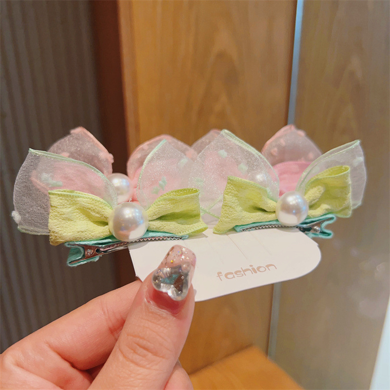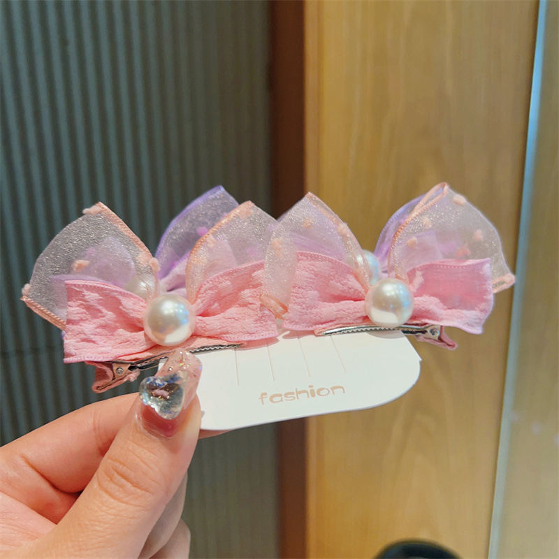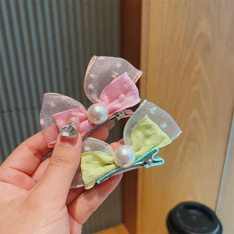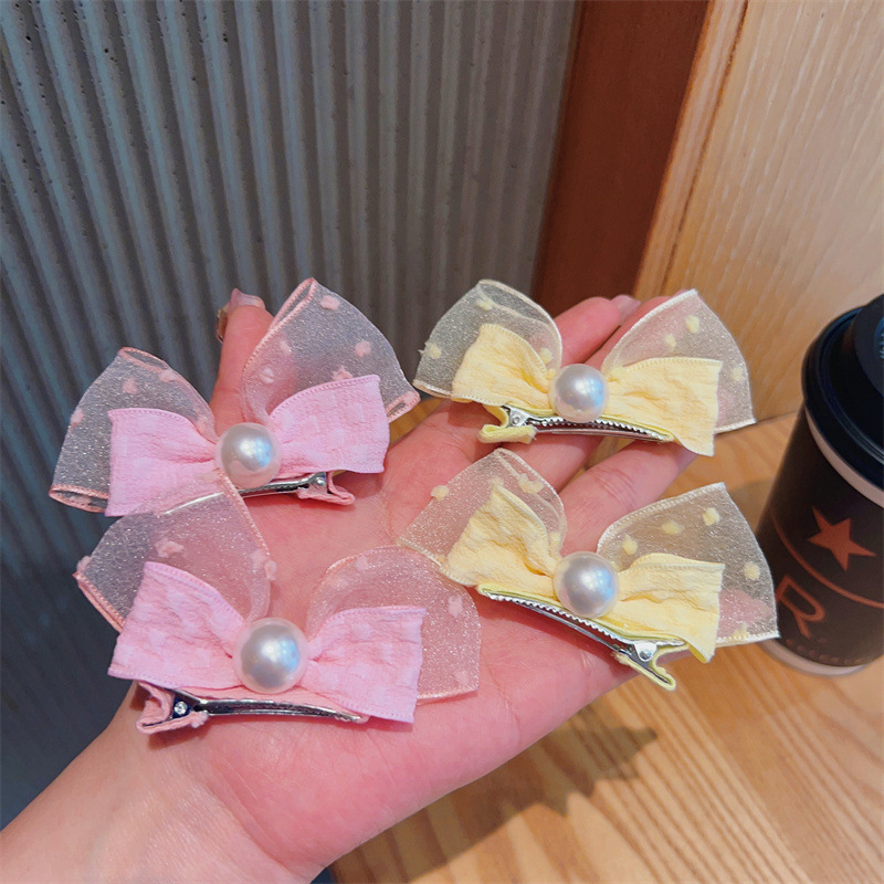 korean fresh children barrettes mesh bow pearl hairpin side clip cute baby does not hurt hair accessories