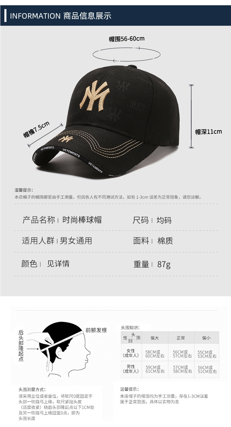 Spring and Autumn New Men's and Women's Baseball Hat Korean Style Fashionable Embroidery Alphabet Peaked Cap Outdoor Leisure Sports Sunhat