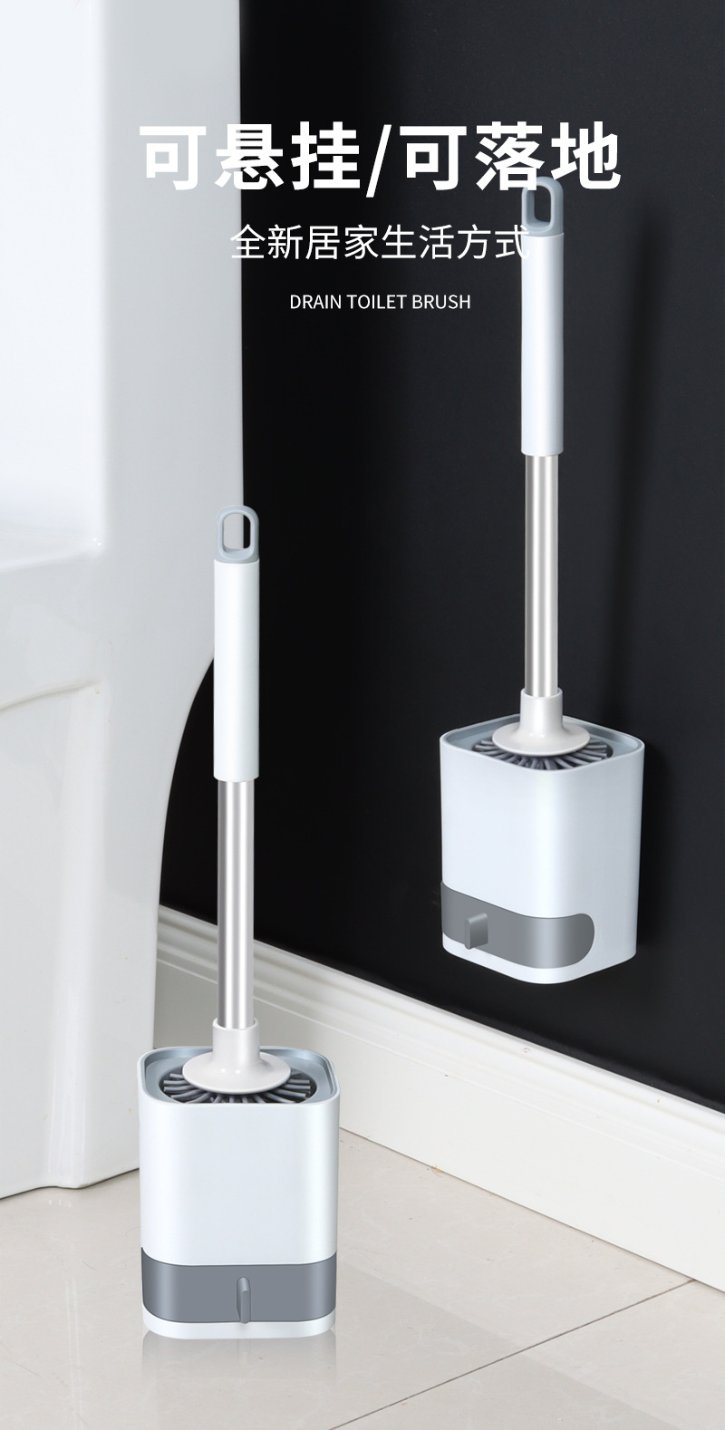 toilet brush long handle soft hair toilet brush set portable punch-free hanging floor toilet brush set