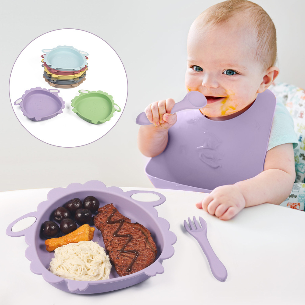 Grade Separated Dish Four-compartment Cartoon Silicone Breakfast Plate Dinner Plate