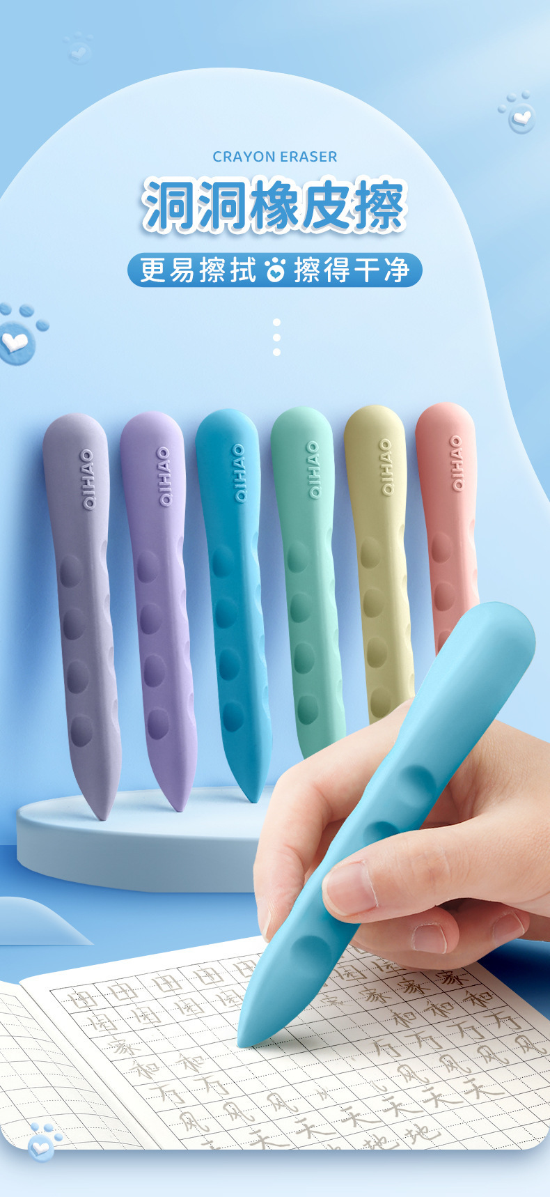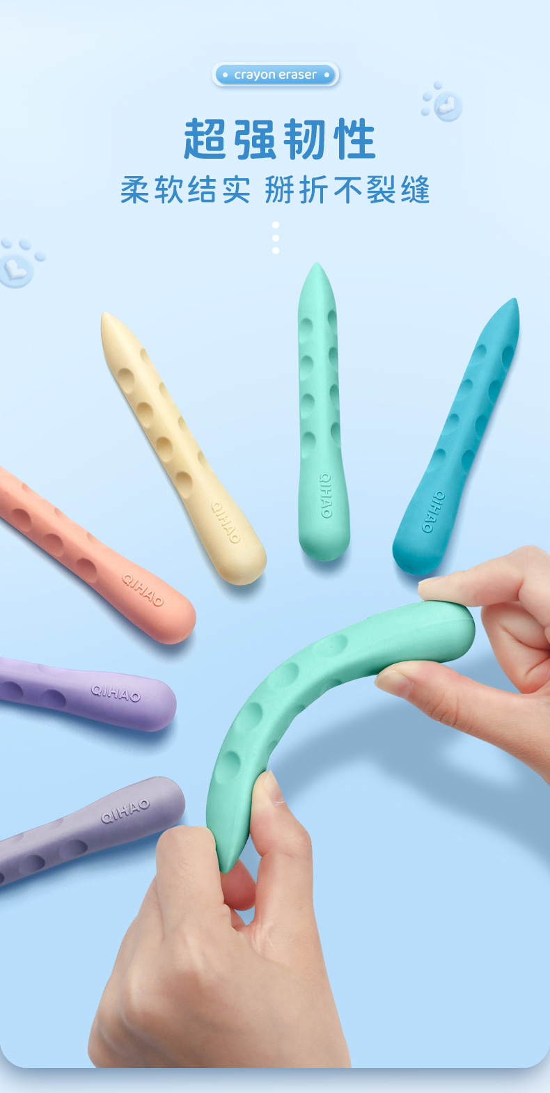 Qihao 8870 Super Large Hole Eraser Only for Pupils Seamless Non-Dandruff Children Creative Large Kindergarten Oak