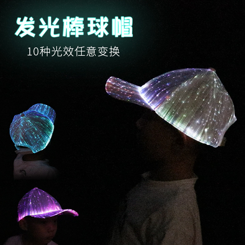 New Led Optical Fiber Luminous Hat Internet Celebrity Same Style Colorful Luminous Hat Outdoor Luminous Peaked Cap Baseball Wholesale