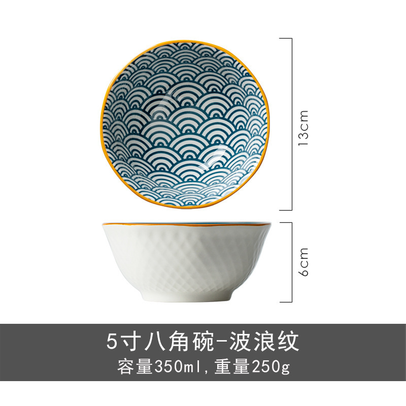 japanese retro octagonal rice bowl restaurant home 5-inch ceramic underglaze ramen bowl wholesale