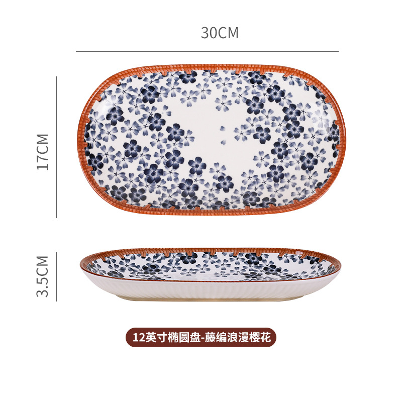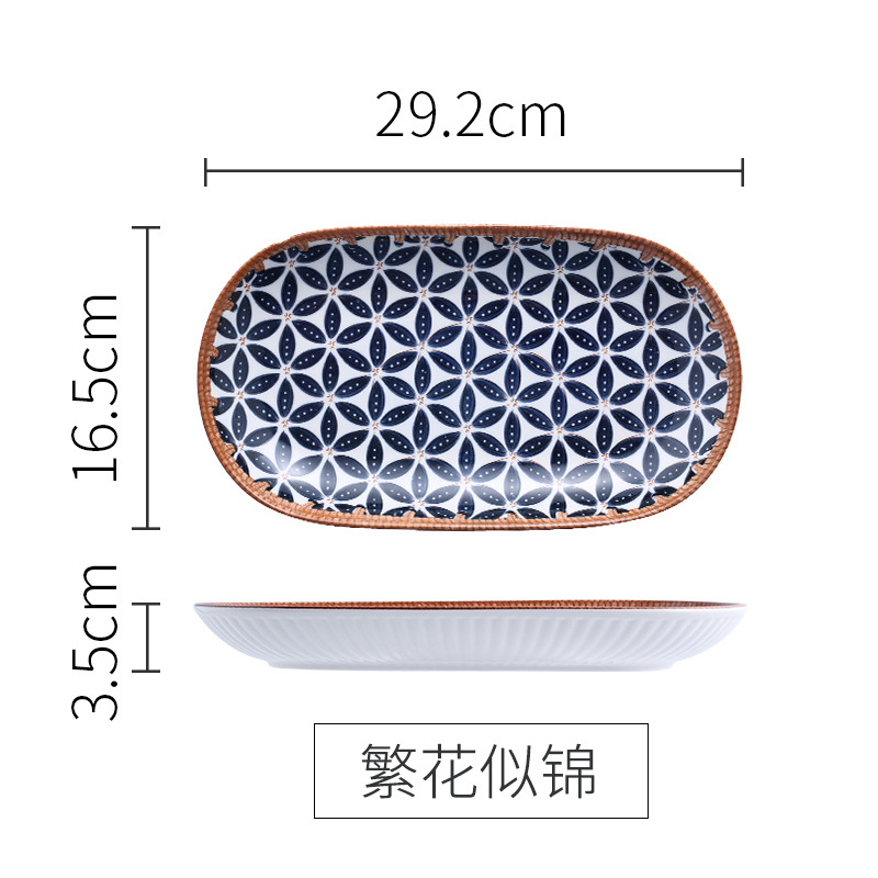 rattan retro domestic fish steaming plate creative restaurant home ceramic japanese large oval long platter