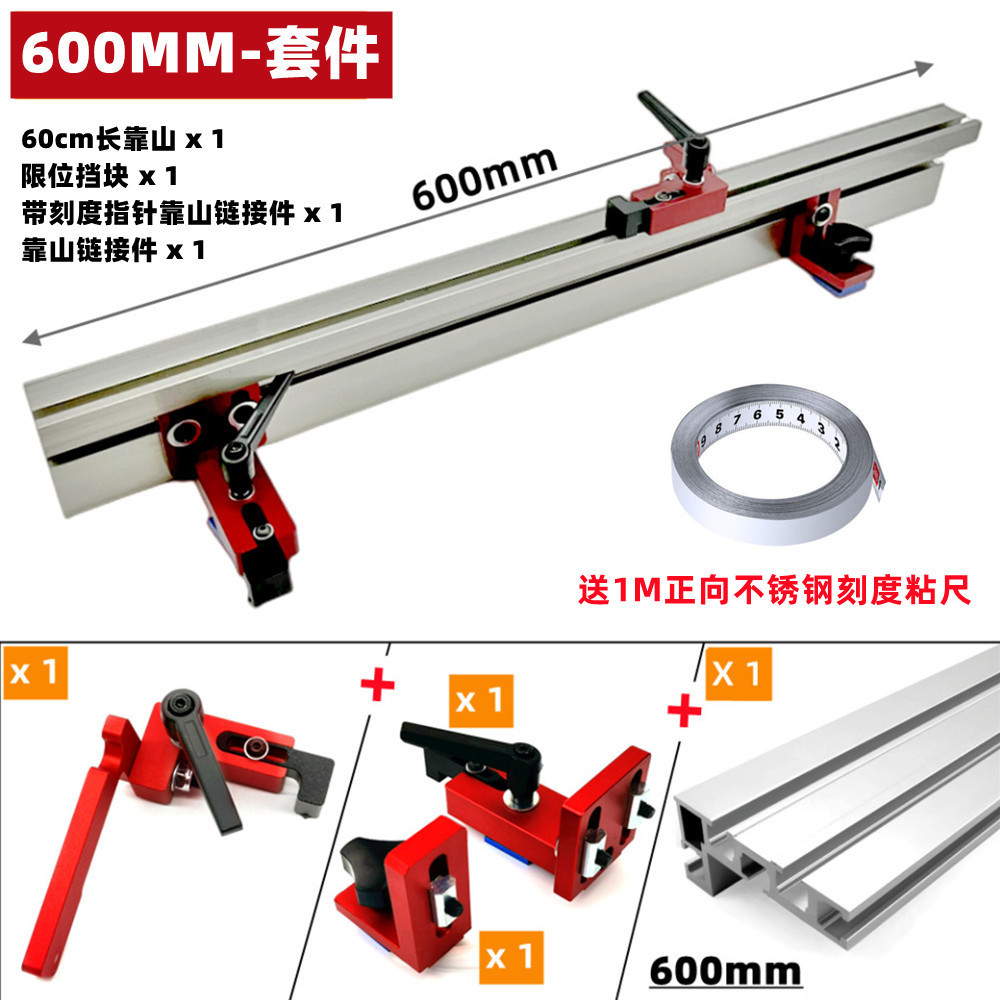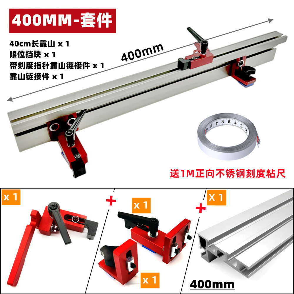 General woodworking support with position limit, bench saw push handle, electric wood milling reverse table, band saw, aluminum alloy support with measuring tape.