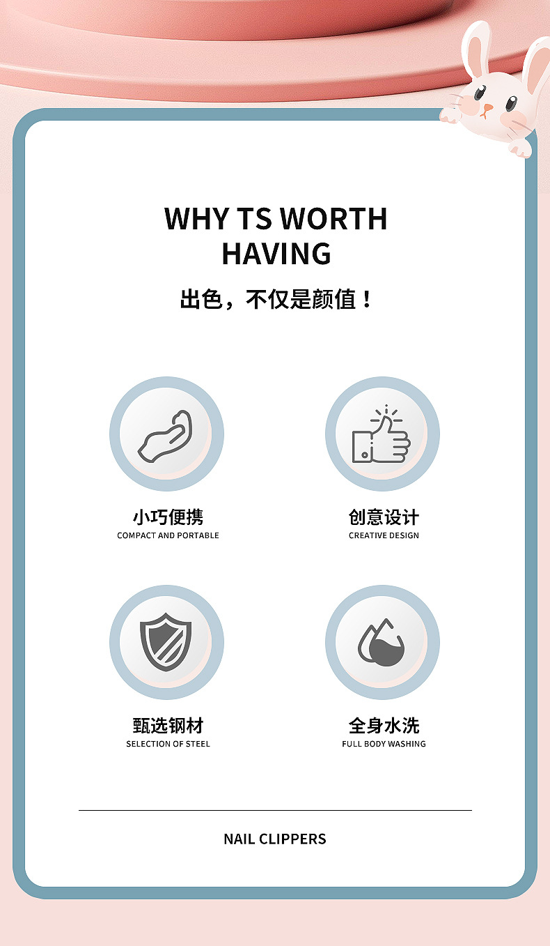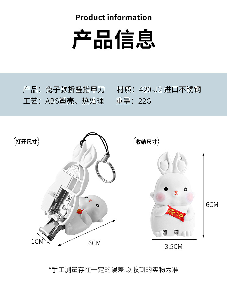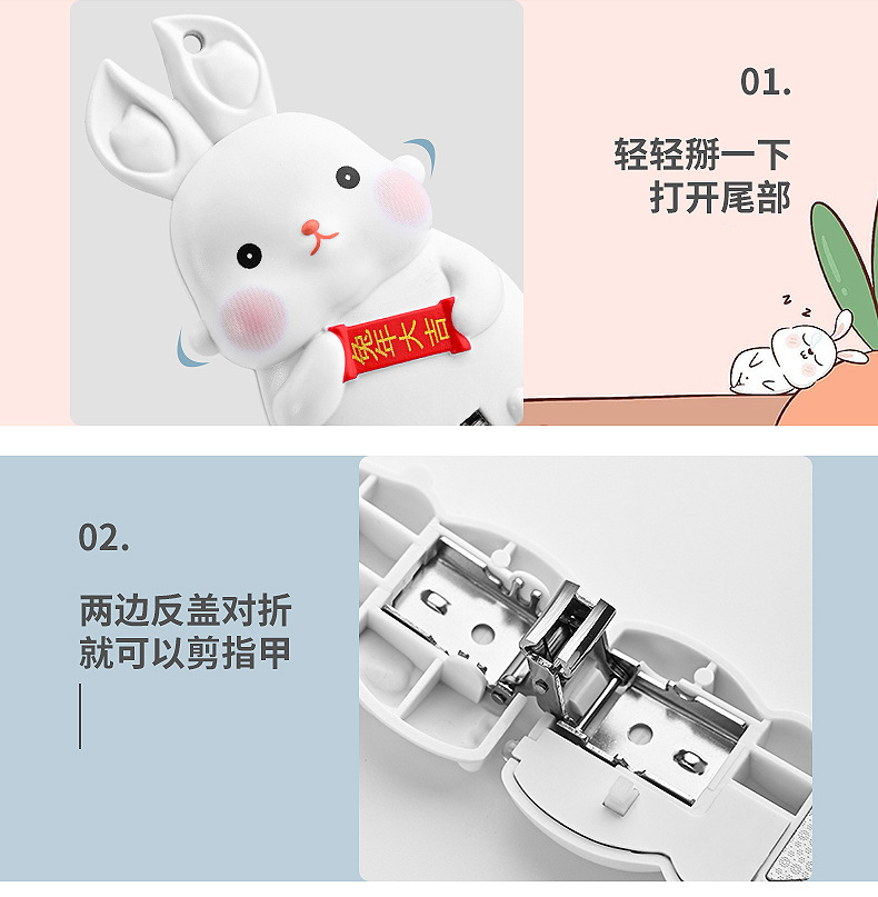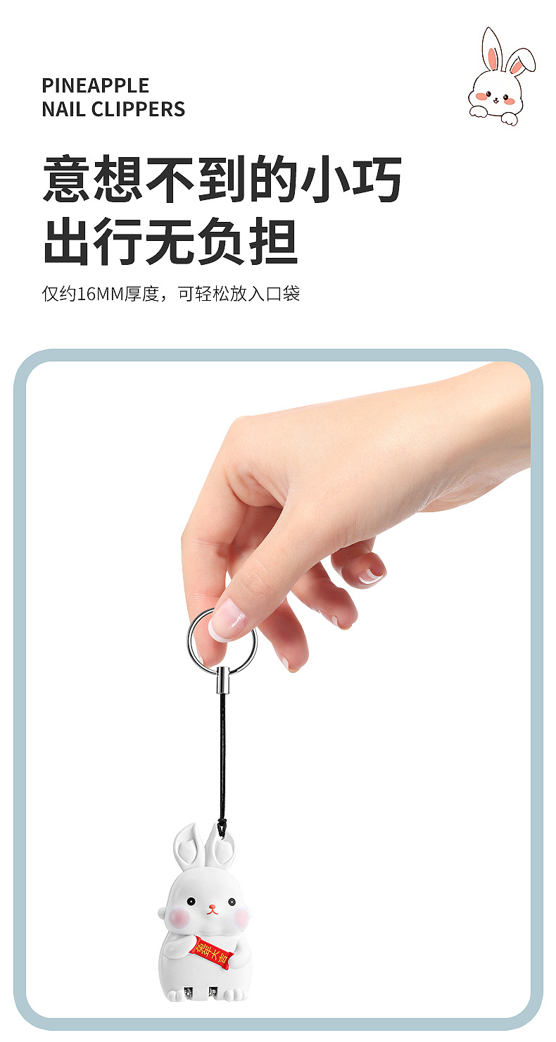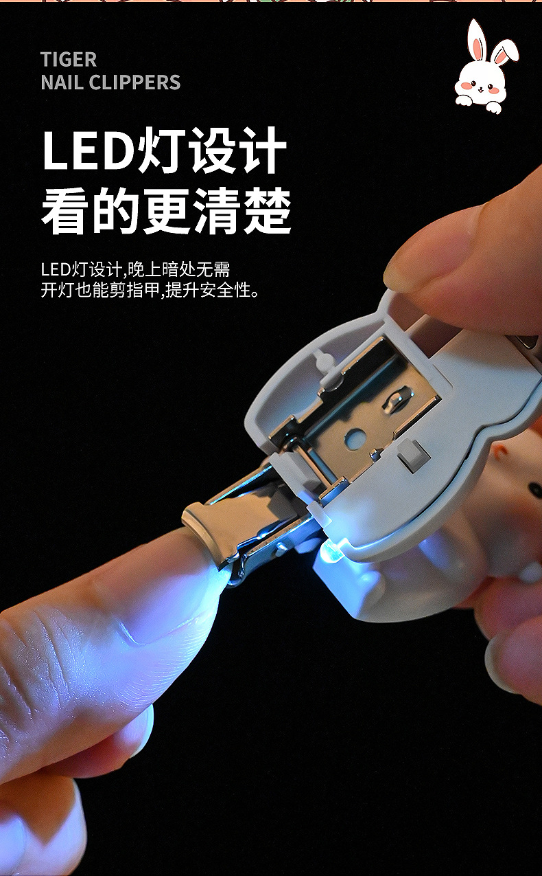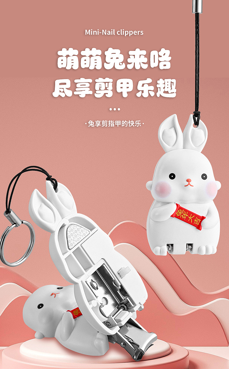 Rabbit Mini Folding Nail Clippers Transformer Nail Clippers Stainless Steel Portable Nail Scissors Key Pendants with Light