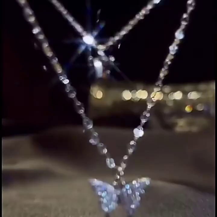 x3 double butterfly silver necklace