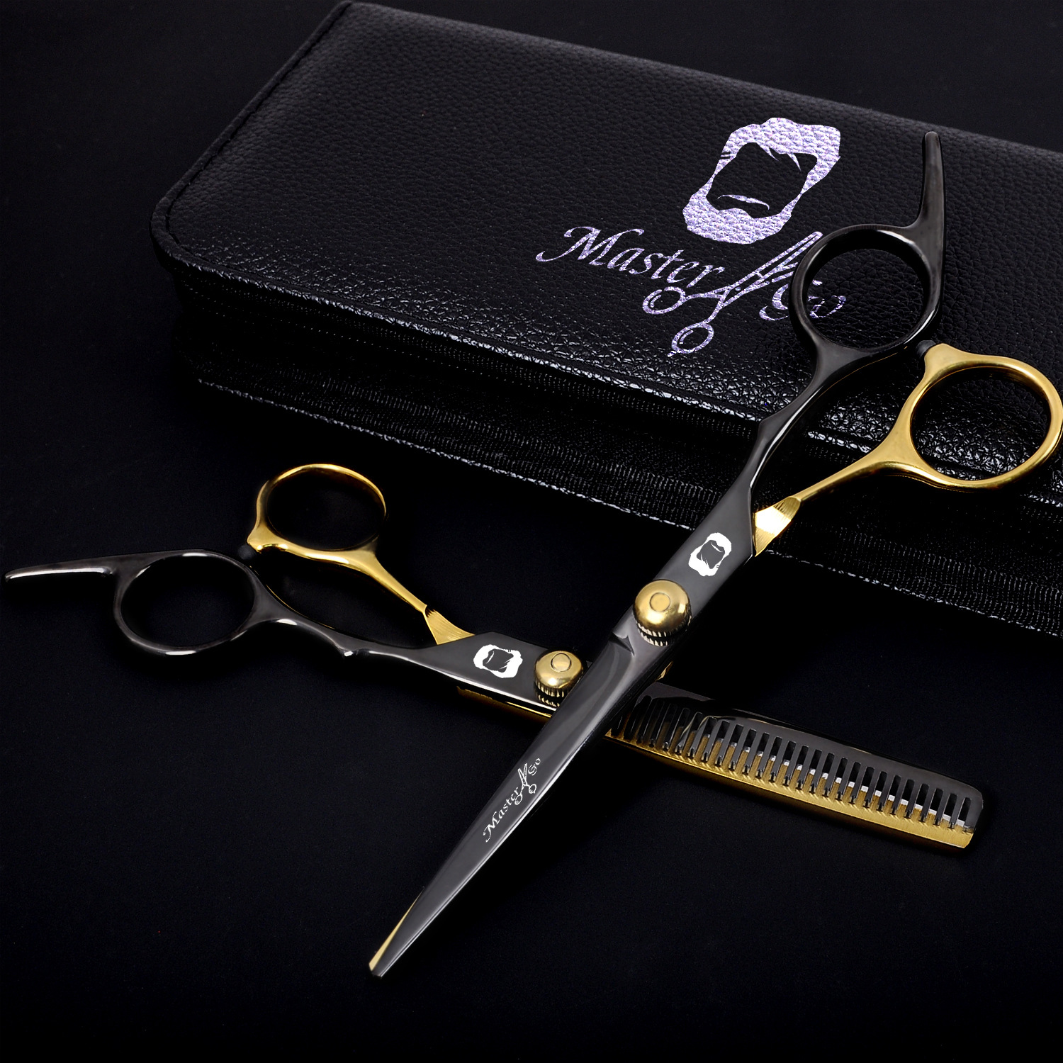 Factory Wholesale Hairdressing Scissors Hairdressing Scissors Straight Snips Bangs Thin Broken Hair Thinning Scissors Black Gold Scissors Set