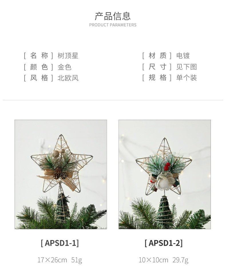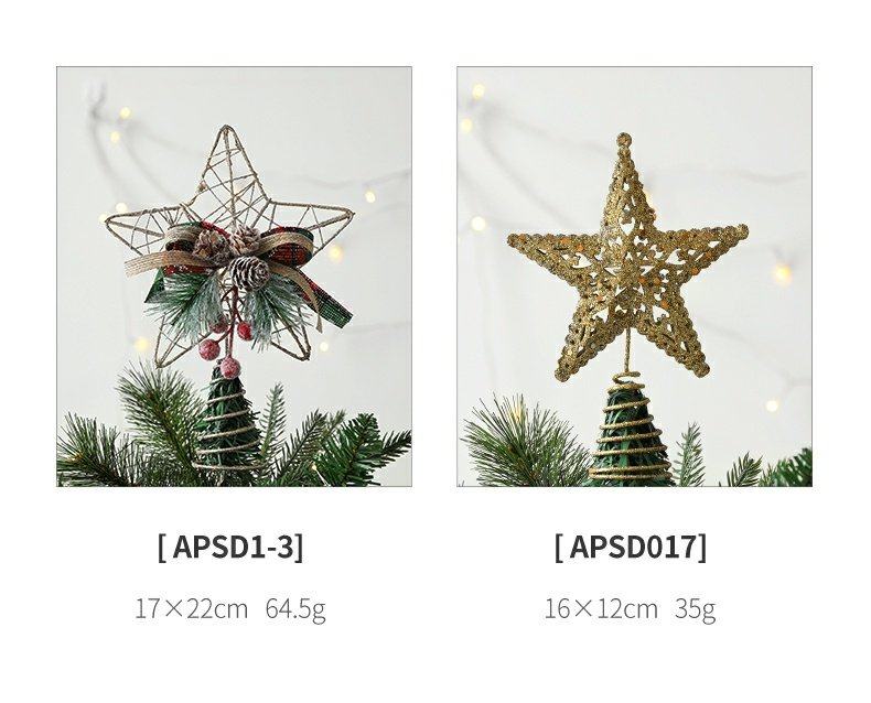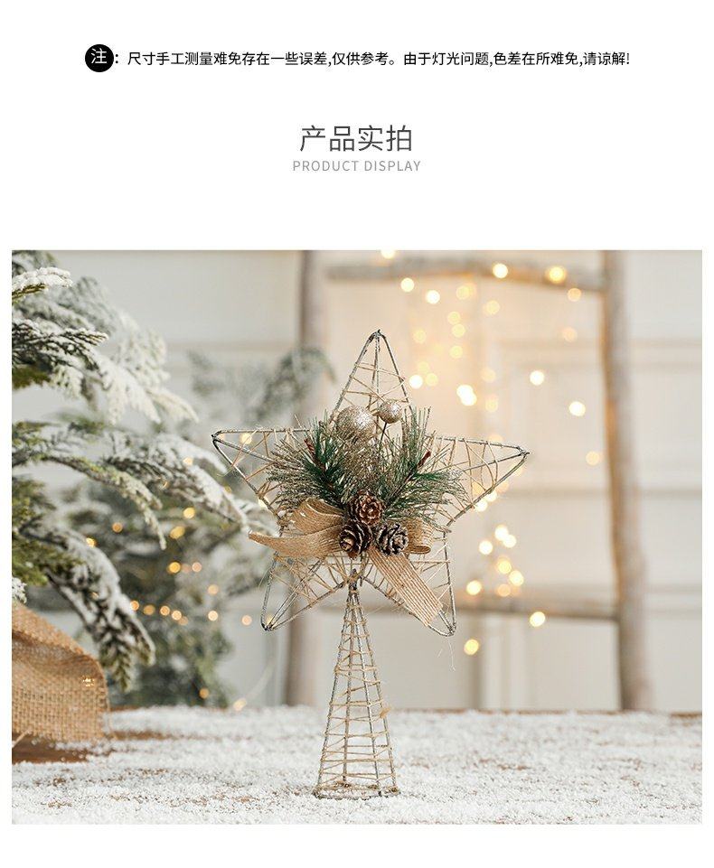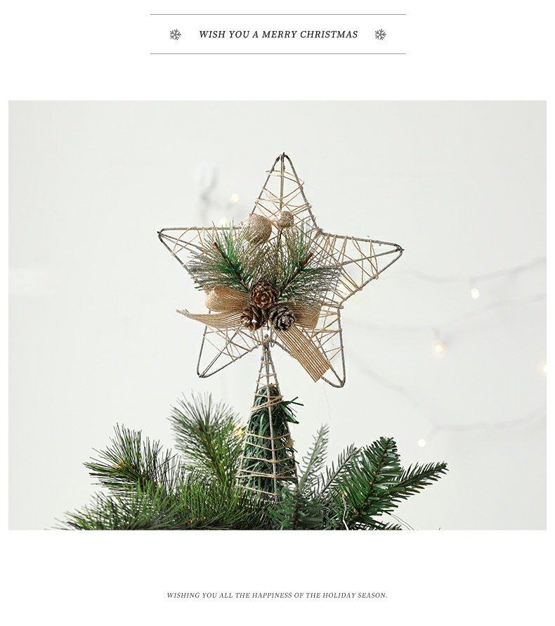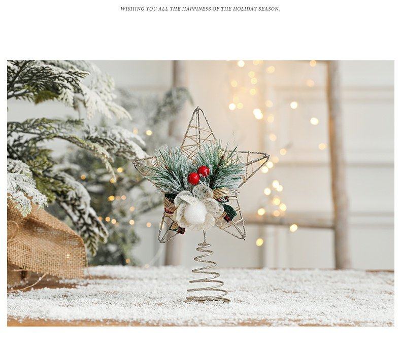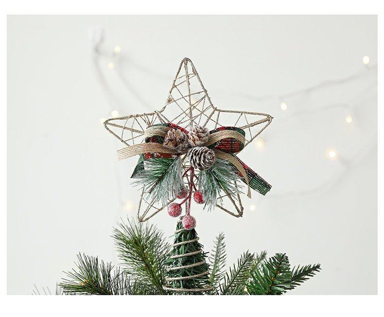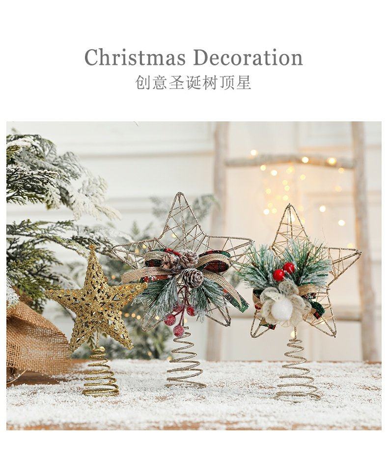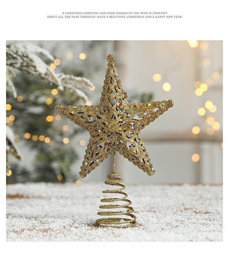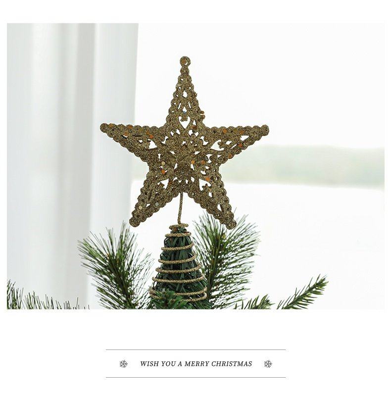 decorative christmas decorations christmas tree top wrought iron five-pointed star accessories golden hanging ornaments living room table decoration