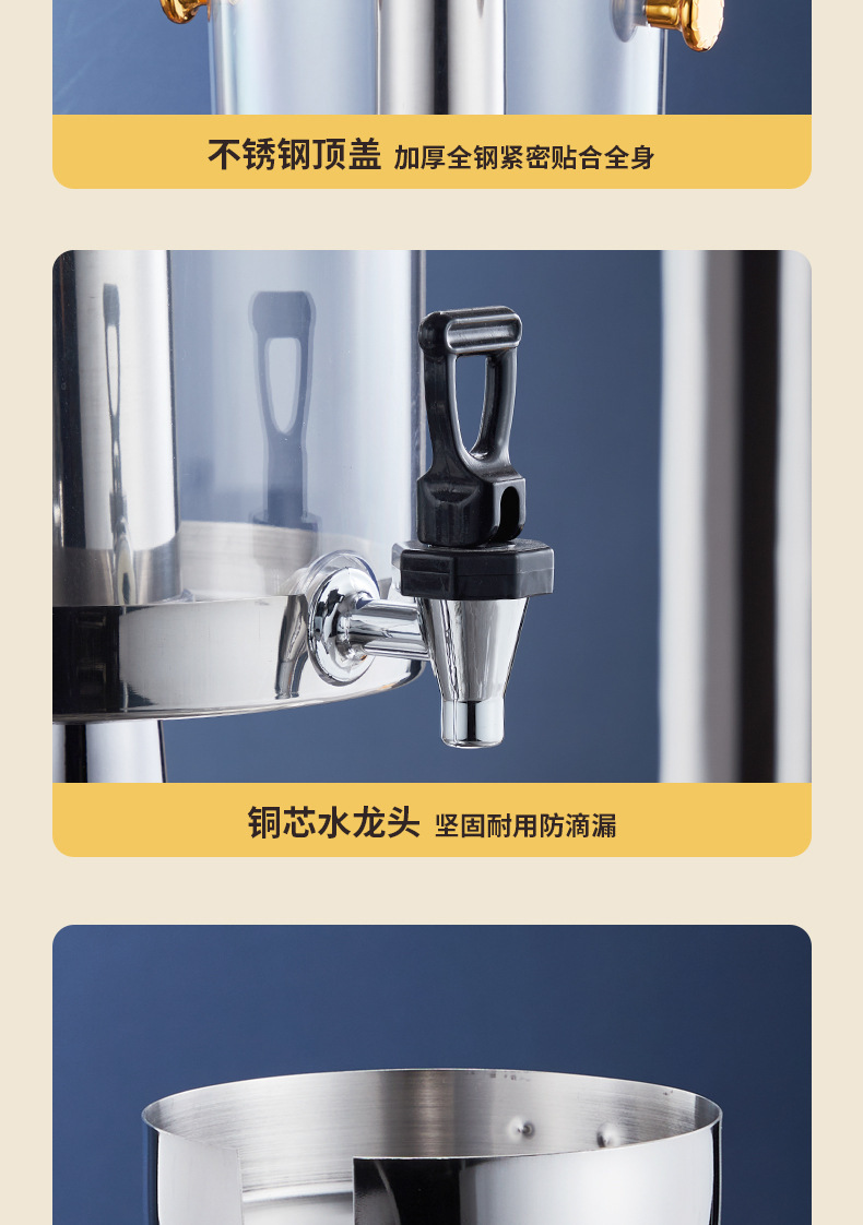 Hot and Cold Ding Hotel Commercial Beverage Barrel Stainless Steel Visualization Drinking Machine Blender Faucet Juice Cooking Vessel