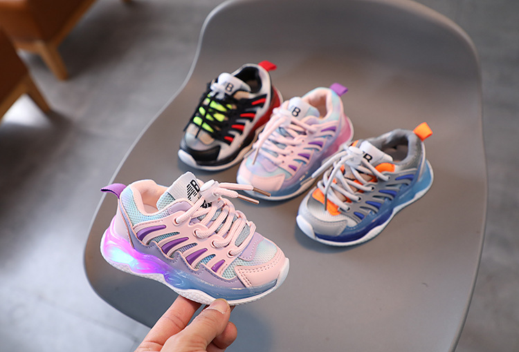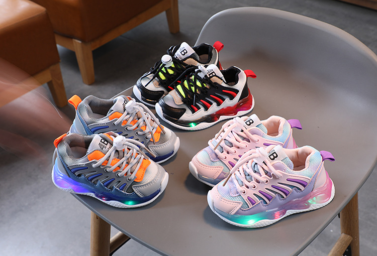 2023 spring and autumn new mesh children's sports shoes boys and girls light-on shoes breathable baby girls' shoes running shoes