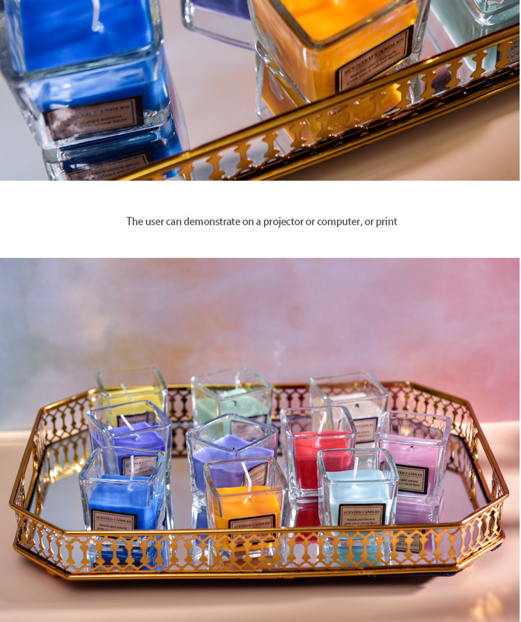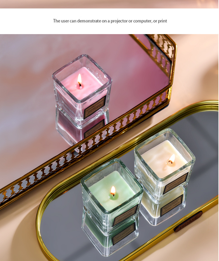 cross-border candy color aromatherapy candle internet celebrity fragrance glass square cup candle bedroom and household incense decoration fresh