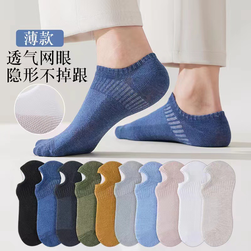 Socks Men's Summer Thin Cotton Socks Sweat-Absorbent Non-Slip Low-Top Tight Men's Socks Mesh Breathable Invisible Socks