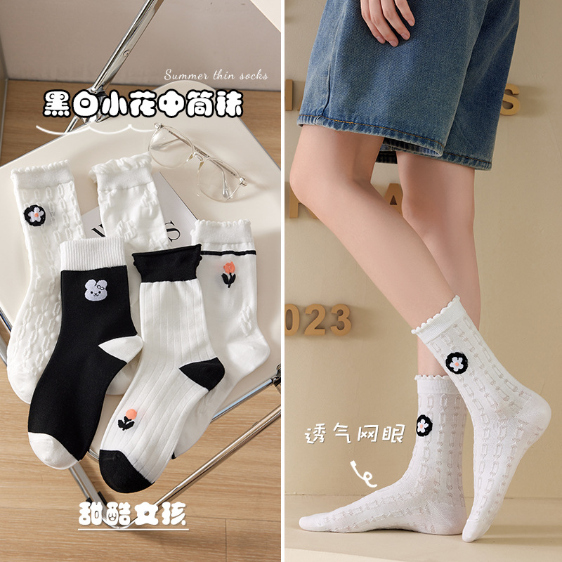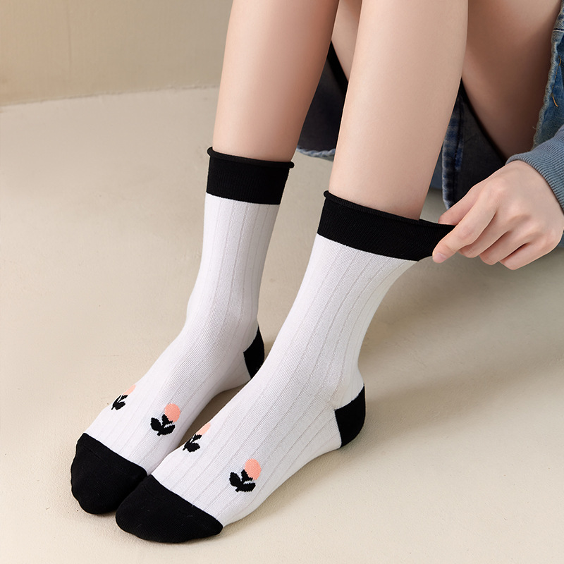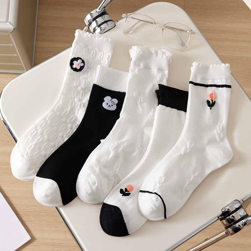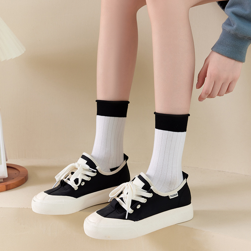 Women's Socks Autumn and Winter Mid-Calf Length Socks Women's Japanese Ins Fashion Bunching Socks Korean Style Sweet Cute Wild White Thigh High Socks