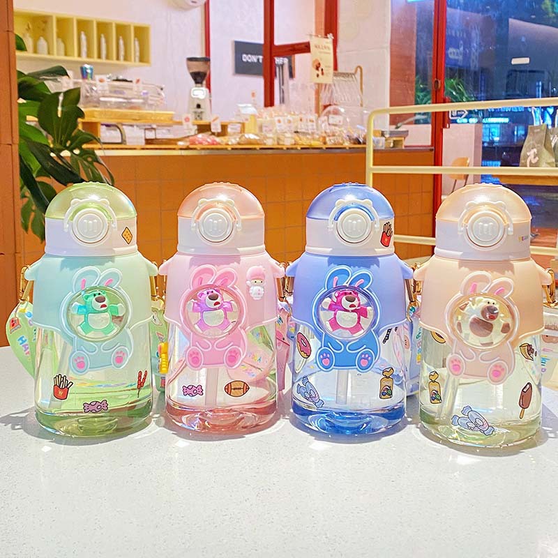 Factory Wholesale Good-looking Summer Plastic Cup Crossbody Strap Portable Cup Cartoon Cute Wind Belt Straw Water Bottle