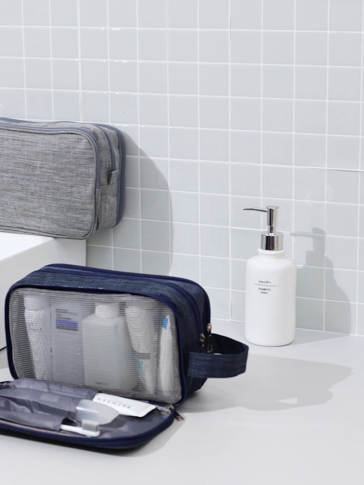 Striped Wash Bag New Large Capacity Dry Wet Separation Oxford Cloth Cosmetic Storage Bag Simple Travel Storage Bag